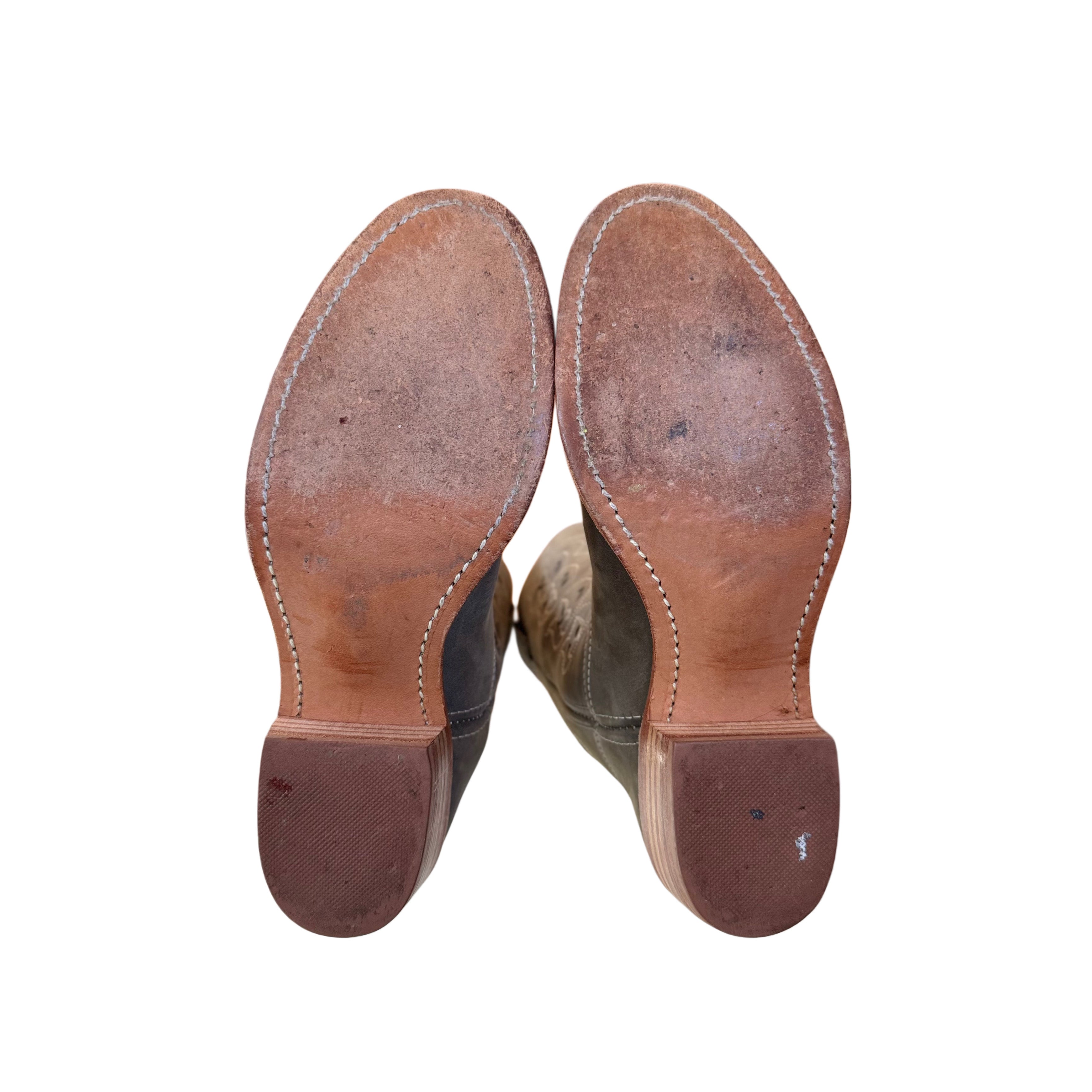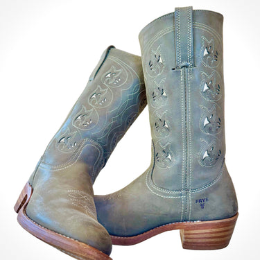 FRYE Vintage Austin Flower Green Cowboy Boots