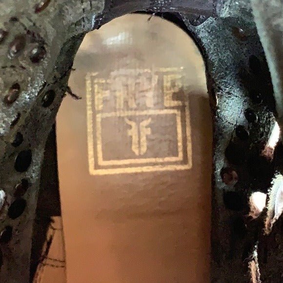 Rare FRYE Veronica Short Harness Silver Studded Laser Cut Black Leather Moto Biker Boots