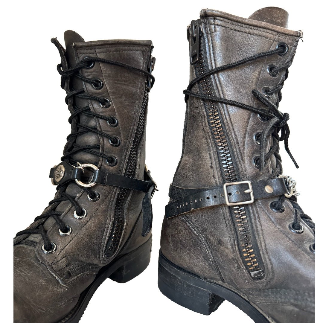 HARLEY-DAVIDSON Vintage Lace Up Zip Combat Moto Biker Ankle Boots