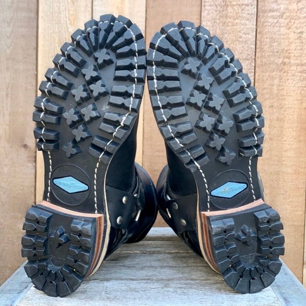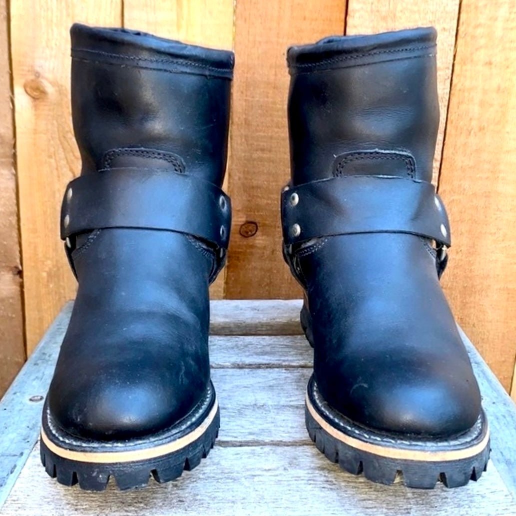 Vintage DURANGO Harness Black Leather Biker Moto Motorcycle Short Chunky Lug Sole Ankle Bootie Boots