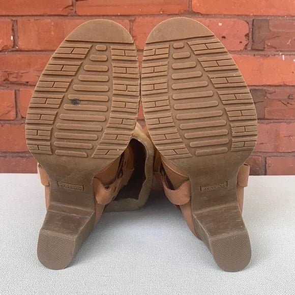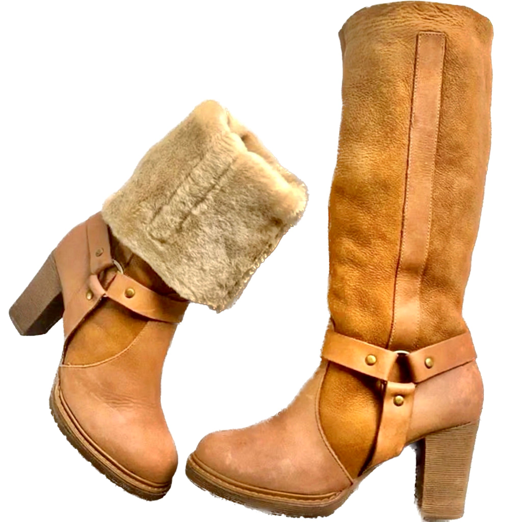 Near-NEW, Super cute STETSON Harness Fur-lined Nubuck Leather Tall (or Short) Cuff Fold Down High Heeled Fall Winter Western Boots