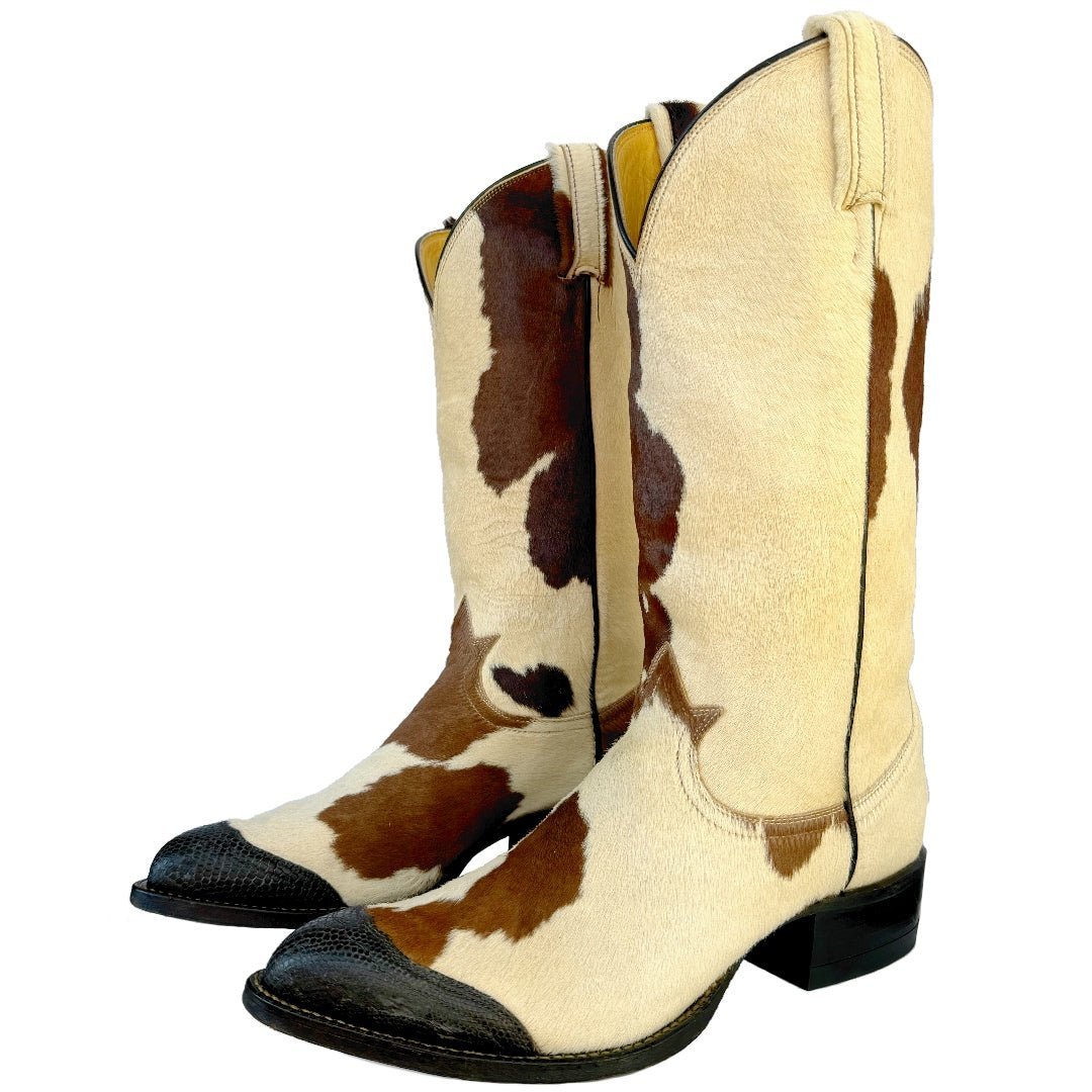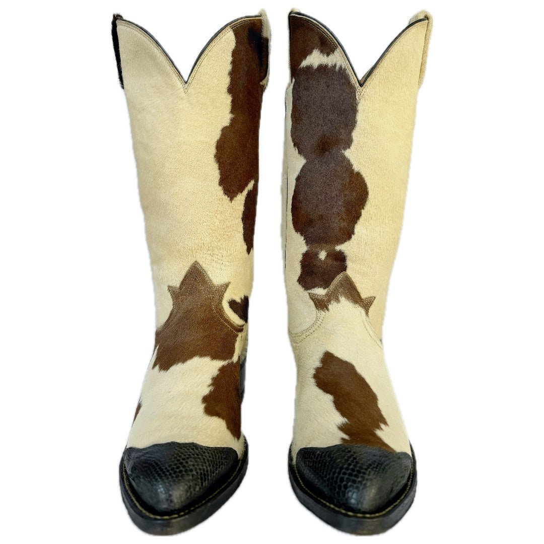 Rare Vintage TONY LAMA Black Label Calf Hair On Cowhide Pony Animal Print Cowgirl Cowboy Western Boots