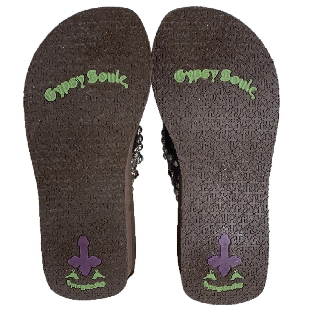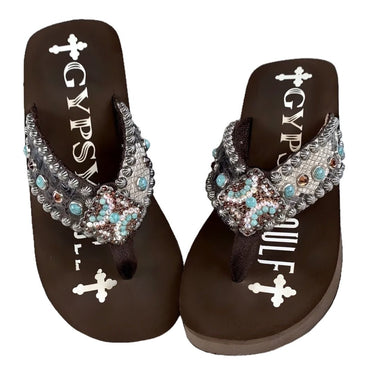 Gypsy Soule Swarovski Crystals Western Platform Wedge Flip Flop Sandals
