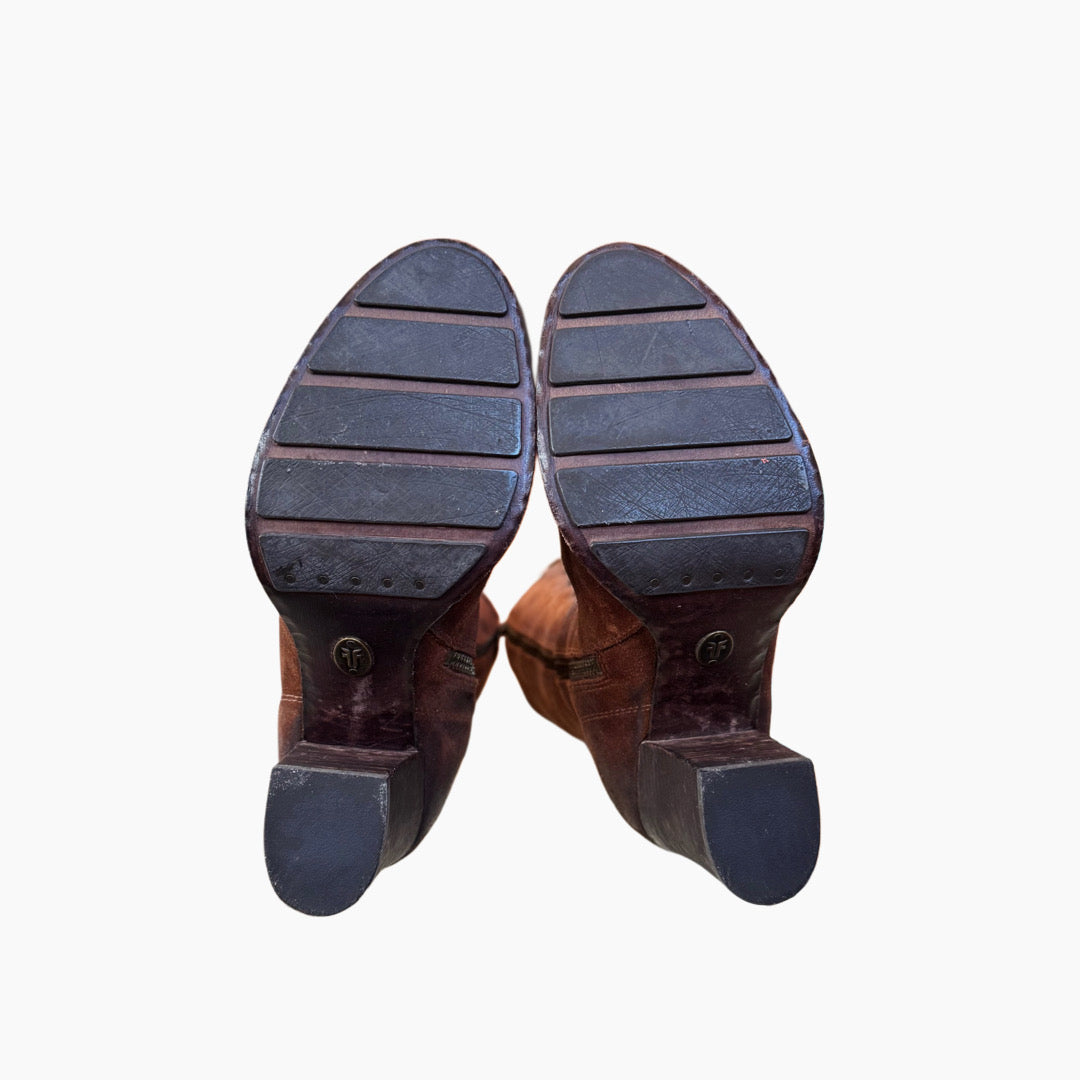 FRYE Parker Moccasin Lace Up Knee High Zipper Brown Boots