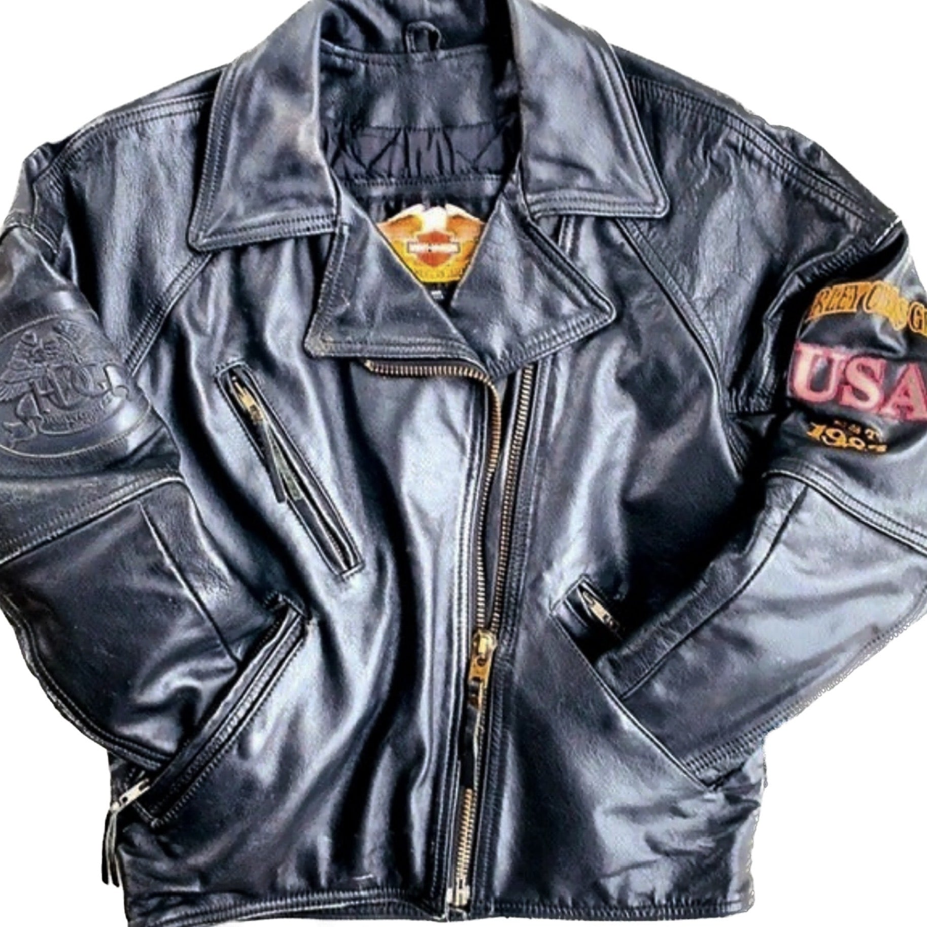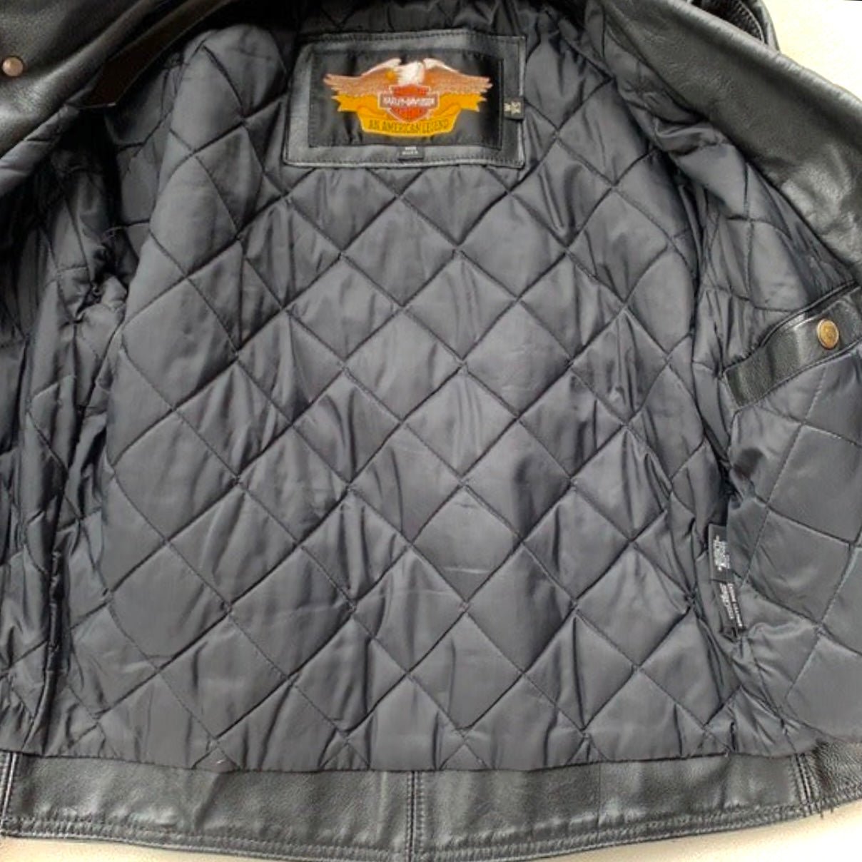 KILLER Vintage HARLEY DAVIDSON Insulated Quilt Lined Asymmetrical Zippered Moto Motorcycle Biker Black Genuine Leather Jacket