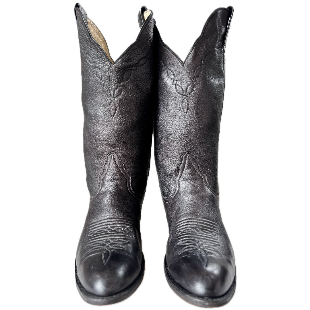 LARRY MAHAN Vintage Deerskin Black Cowgirl Cowboy Boots