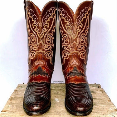 LUCCHESE Lizard Exotic & Goat Skin Leather Cowboy Western Boots