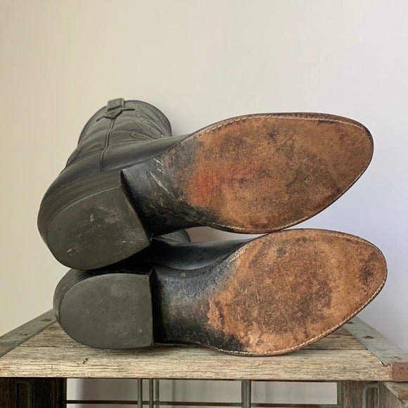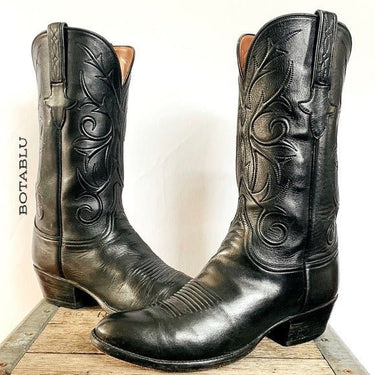 LUCCHESE Classics Handmade Vintage Black Leather Cowboy Western Boots