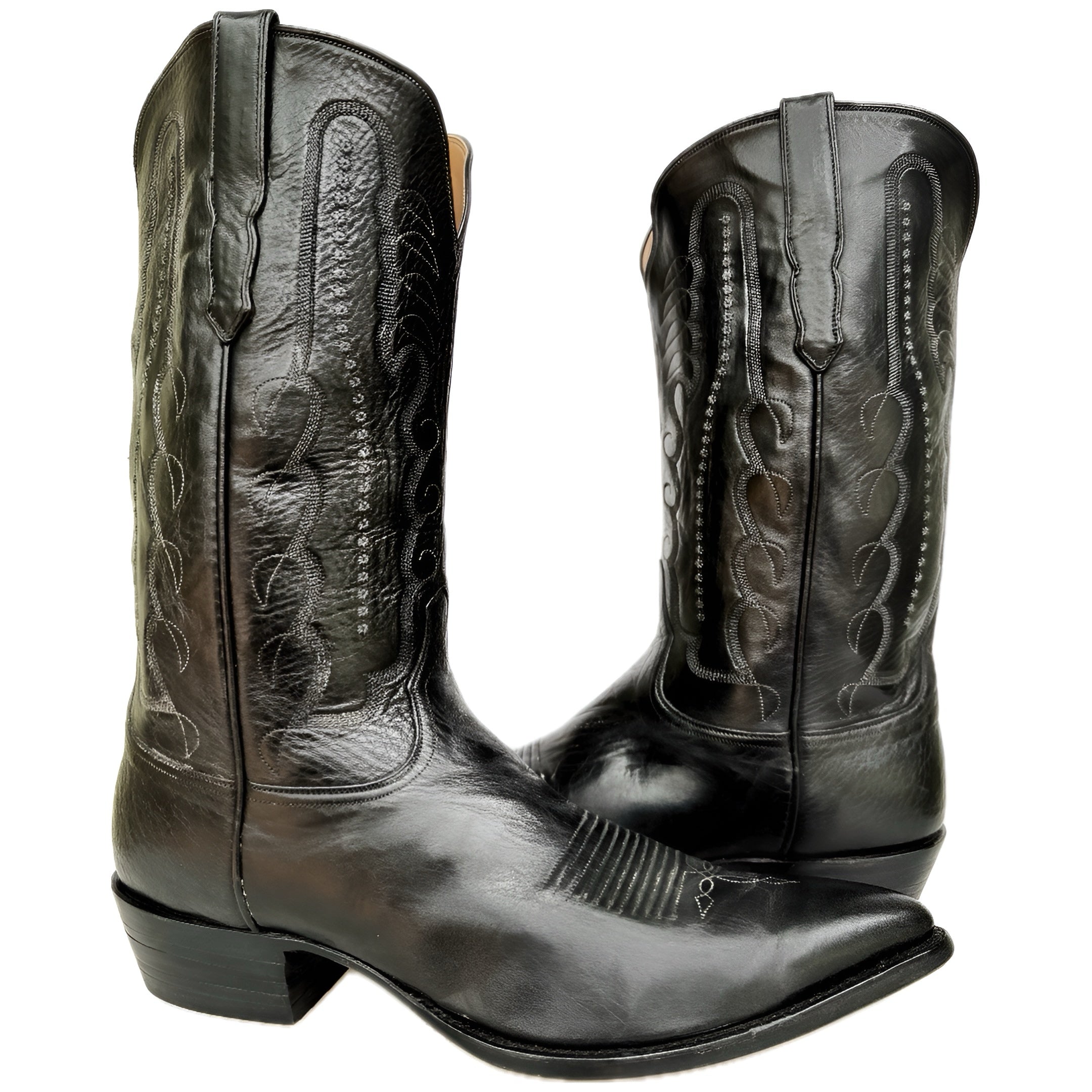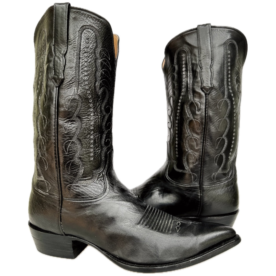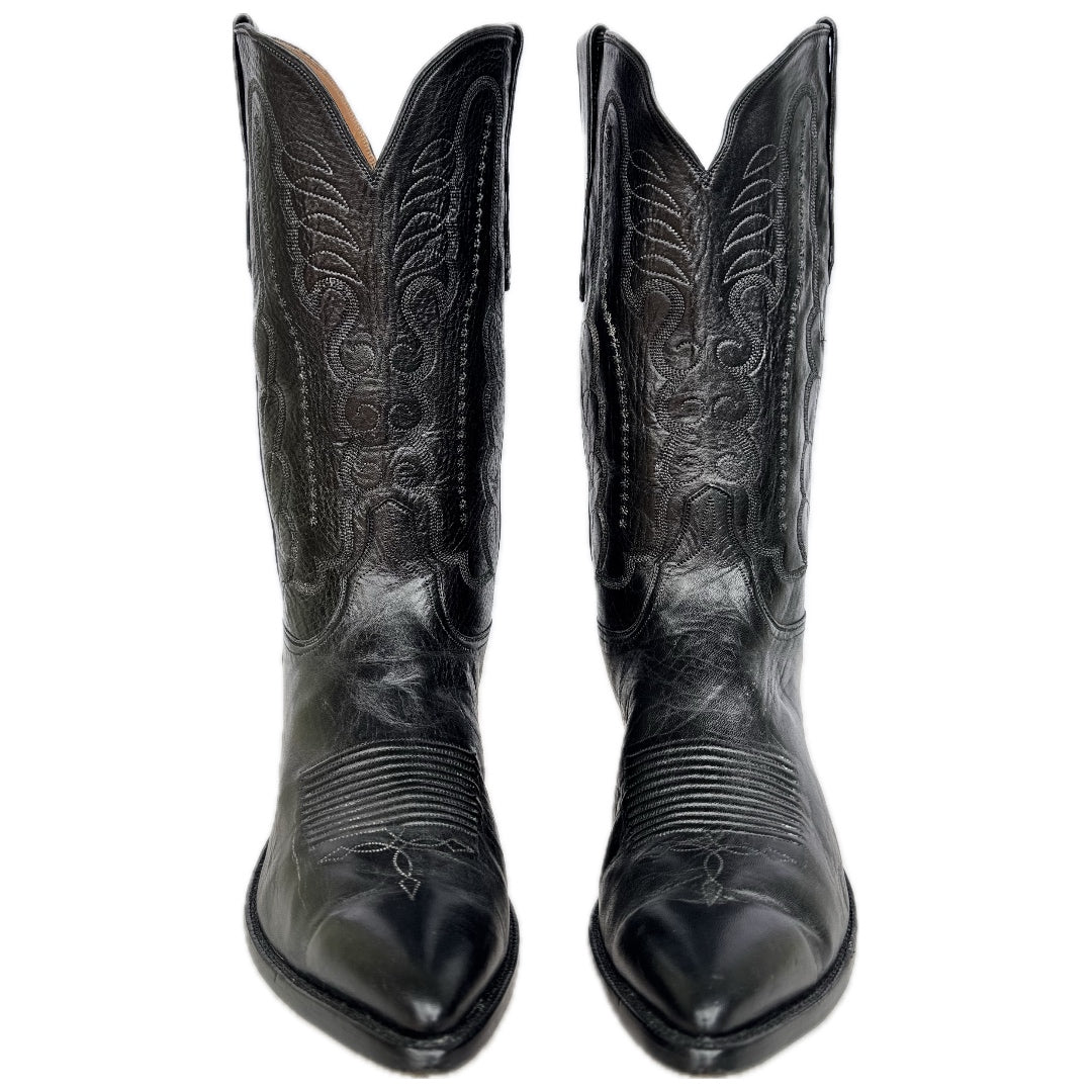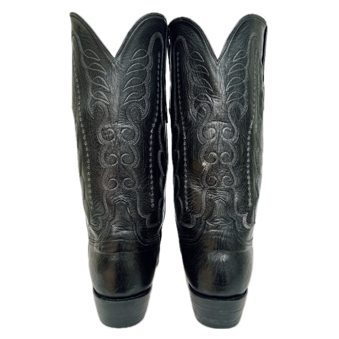 AMMONS Vintage Handmade Kangaroo Leather Black Western Cowboy Boots
