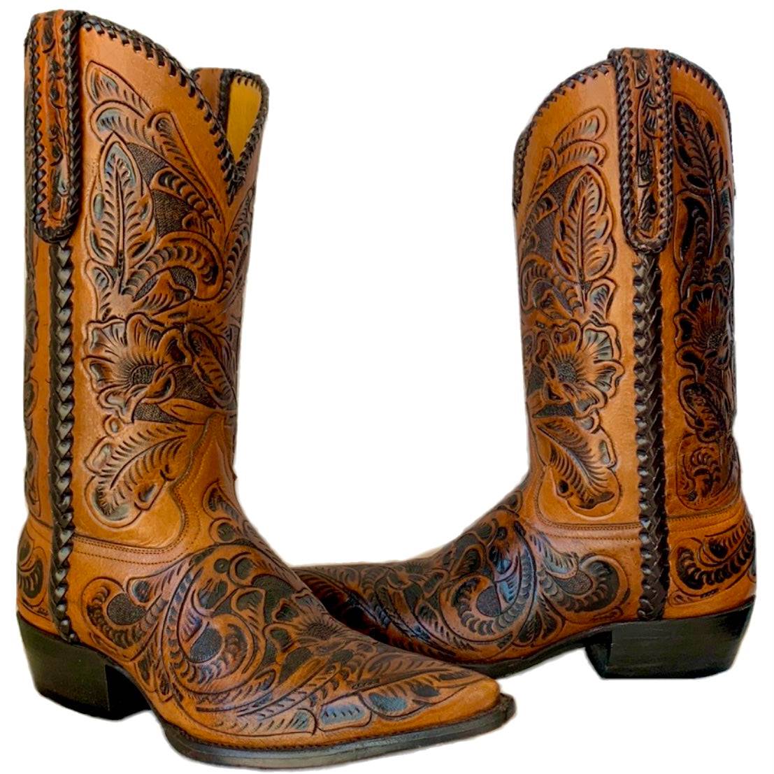 Magnificent, Custom Handmade Hand Tooled Brown Leather Cowboy Western Boots