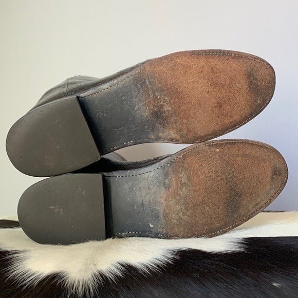 LUCCHESE Ostrich Exotic Leather Black Cherry Roper Cowboy Western Boots