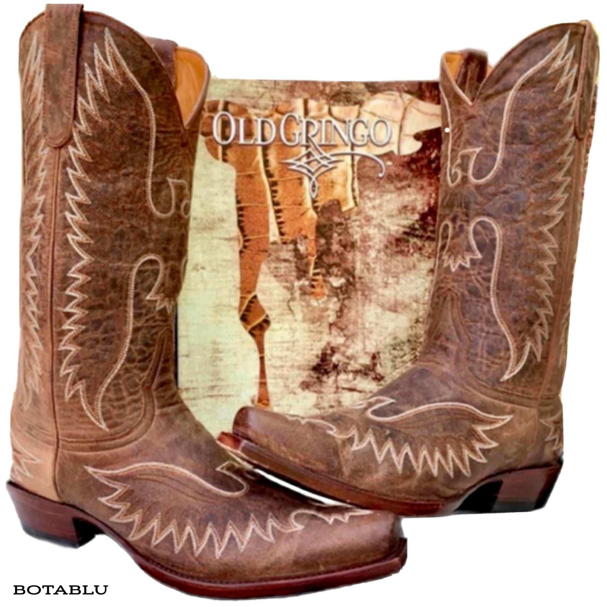 OLD GRINGO Eagle Stitched Brown Leather Mid Calf Snip Toe Cowboy Western Boots