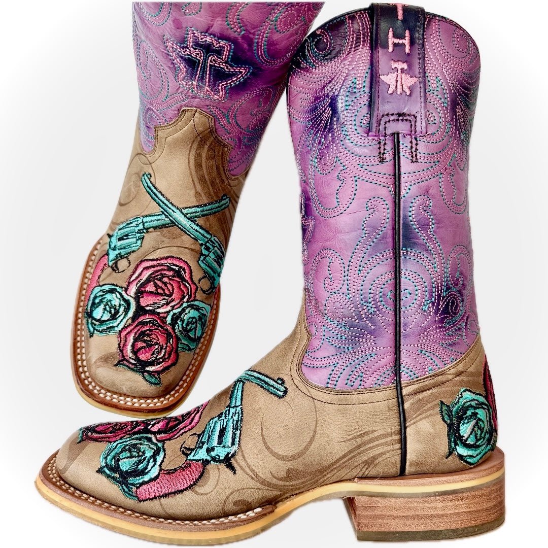 TIN HAUL Sure Shot Guns & Roses Square Toe Cowboy Boots for Women