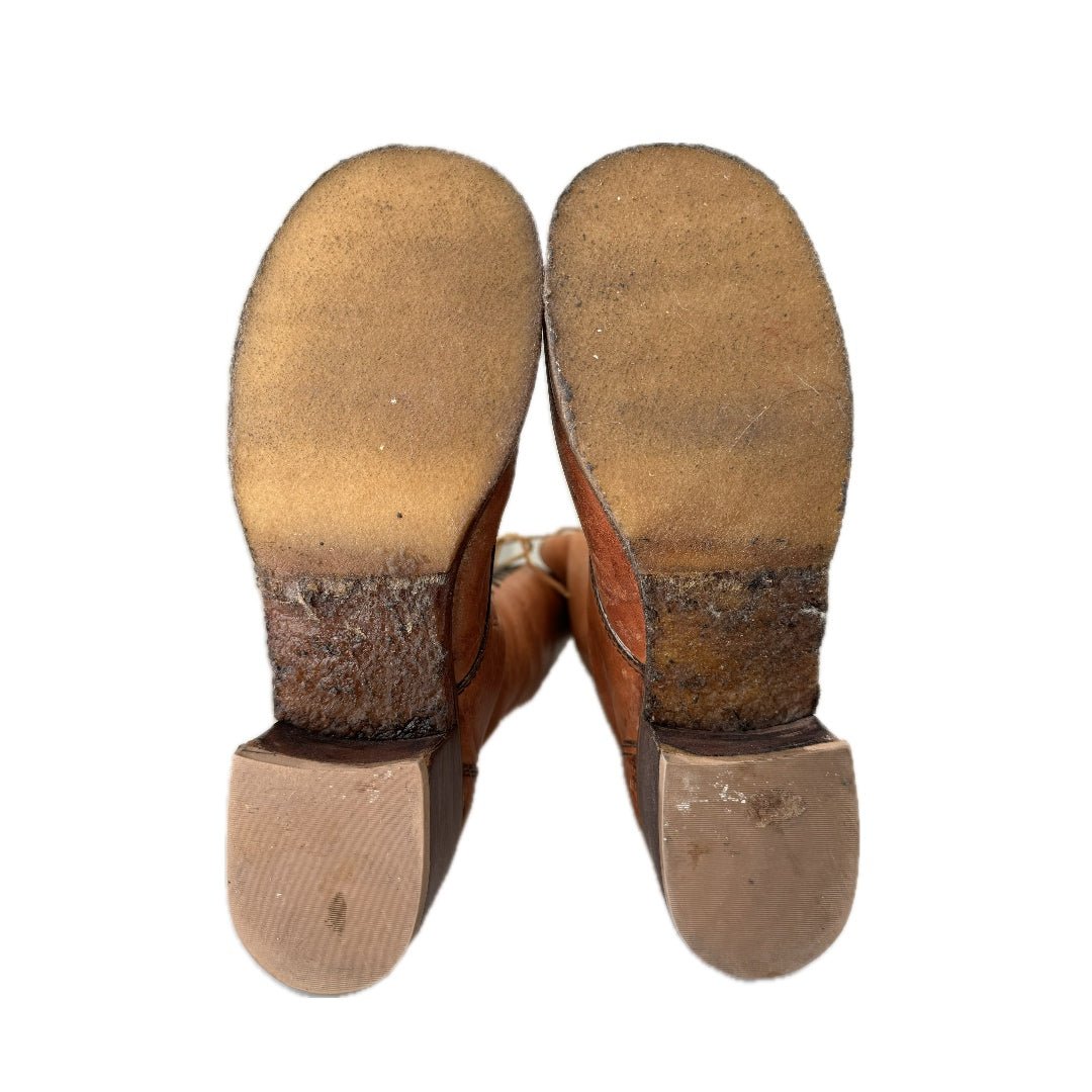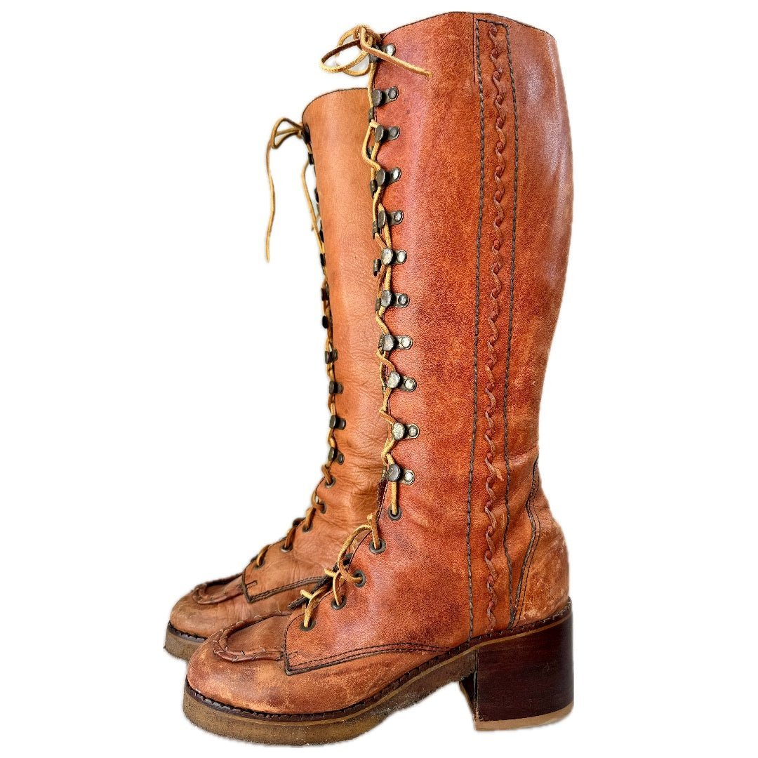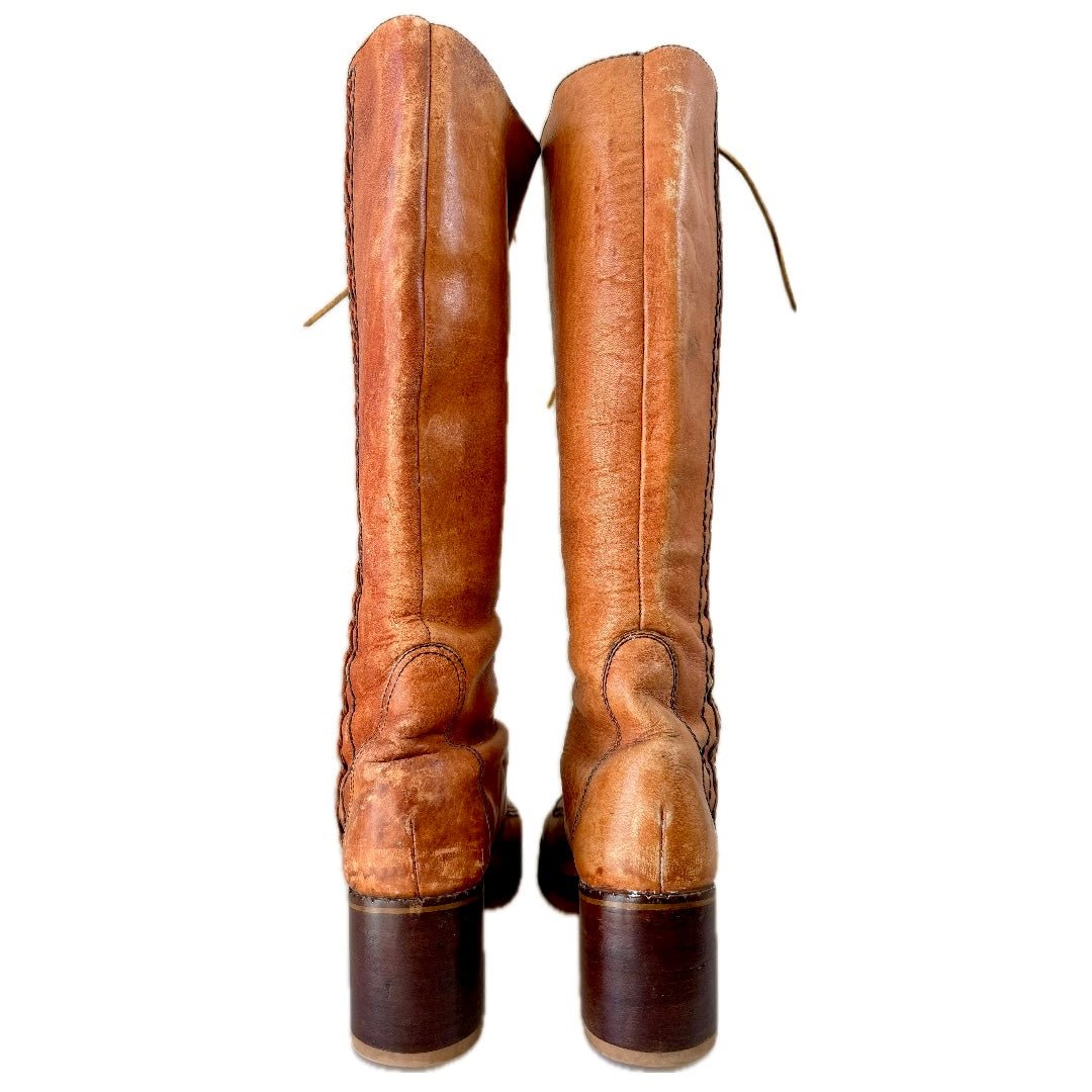 Vintage Y2K Platform Chunky Gum Sole Lace Up Brown Leather Knee High Western Boots