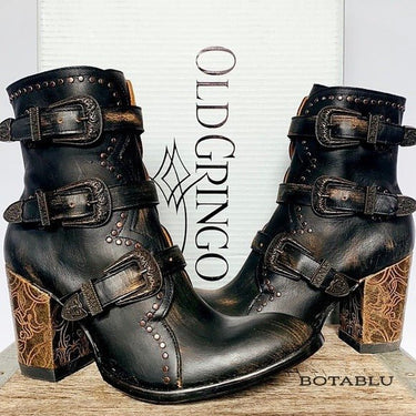 OLD GRINGO Addison Black Leather Buckle Zipper Boho Cowgirl Western Ankle Boots