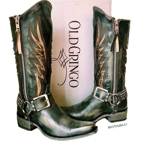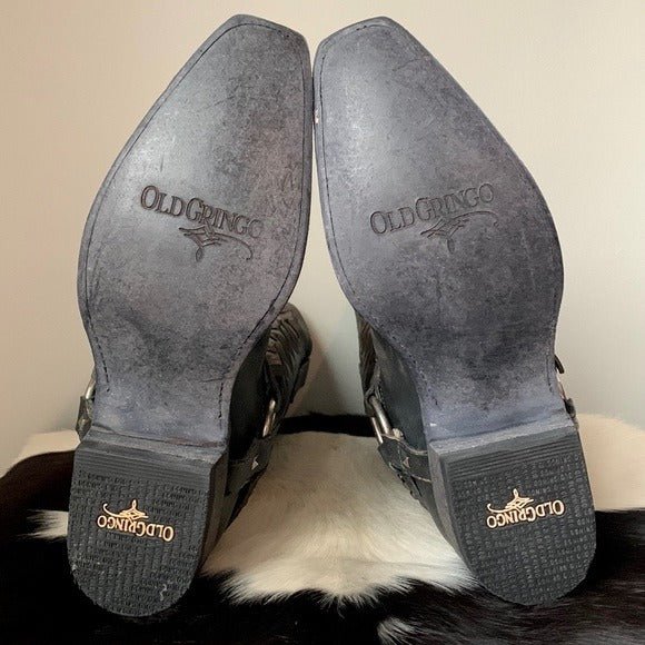 Brand New with Box, Sold-Out and Discontinued Model. OLD GRINGO Aileen Black Old Horse Harness Leather Studded Zippered Biker Moto Cowgirl Cowboy Western Boots