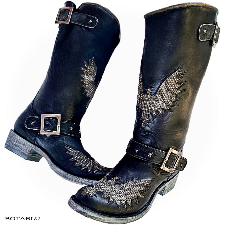 Eagle inlay on vamp and shaft with silver studded detail