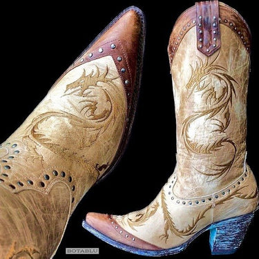 OLD GRINGO Dragon Embroidered Tan Brown Tall Cowgirl Cowboy Western Boots