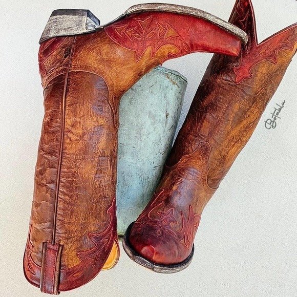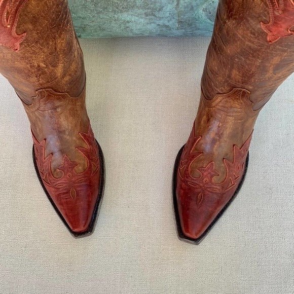 OLD GRINGO Brown Red Leather Tall Mid-Calf Cowgirl Cowboy Western Boots