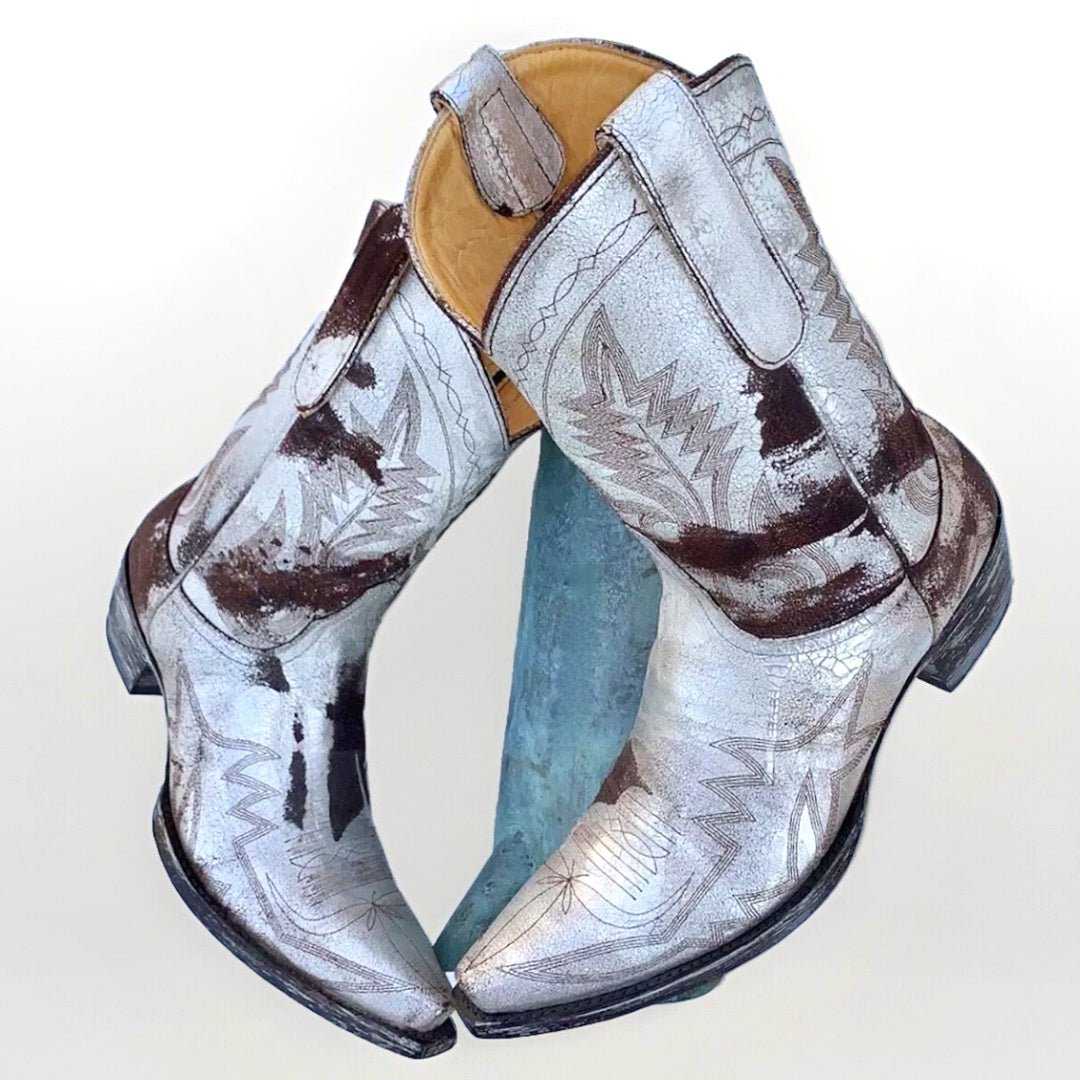 OLD GRINGO Aztec Metallic Silver Brown Short Cowgirl Cowboy Western Boots