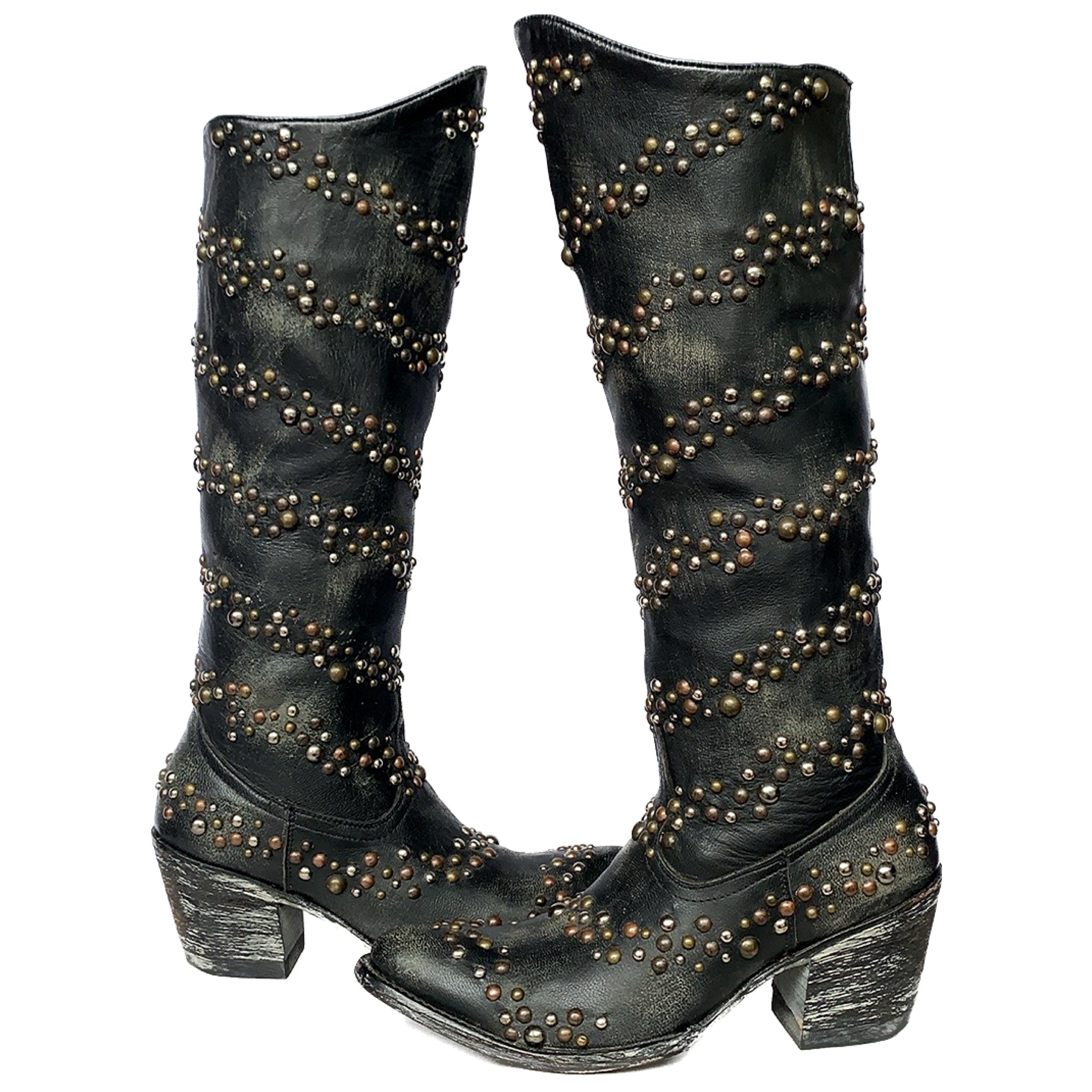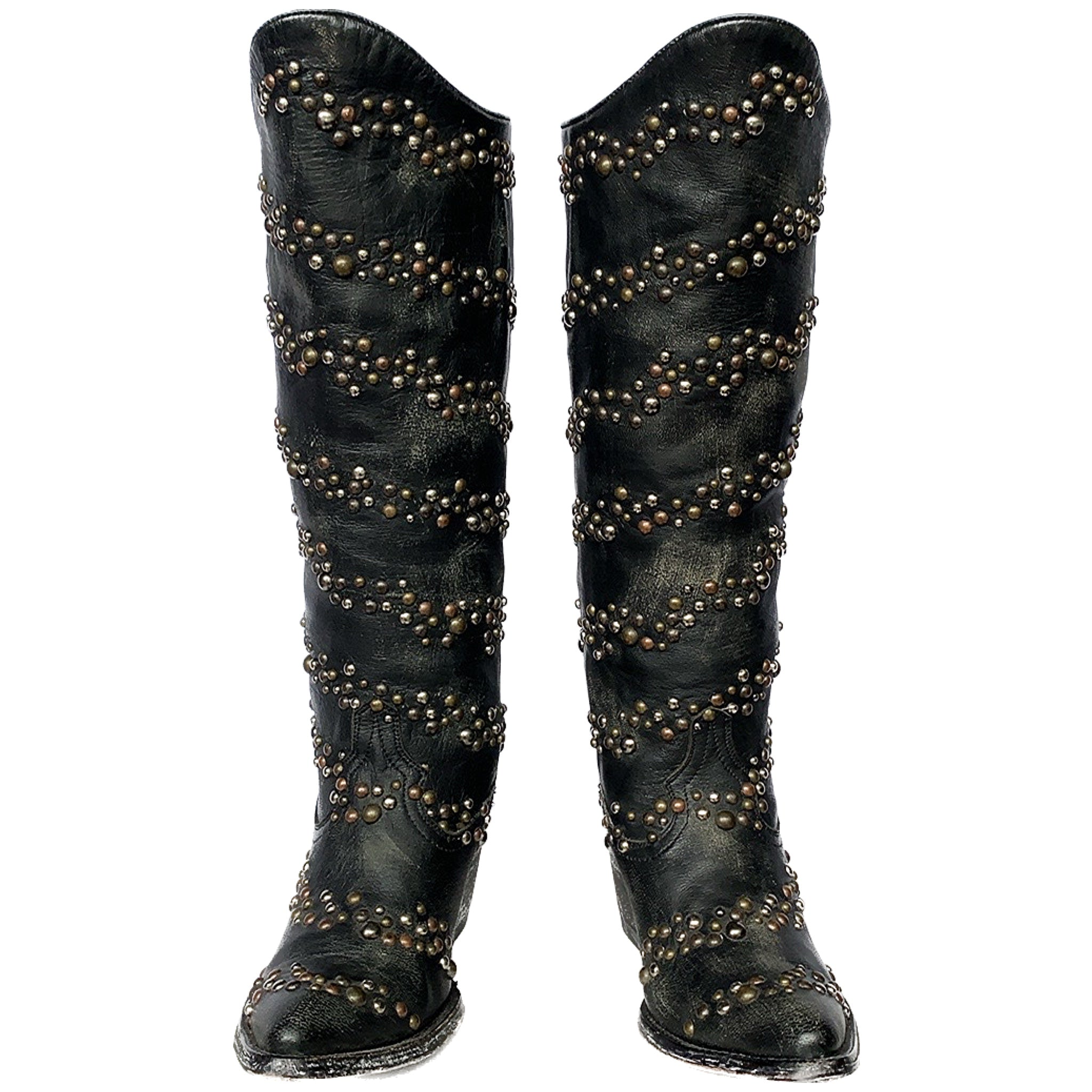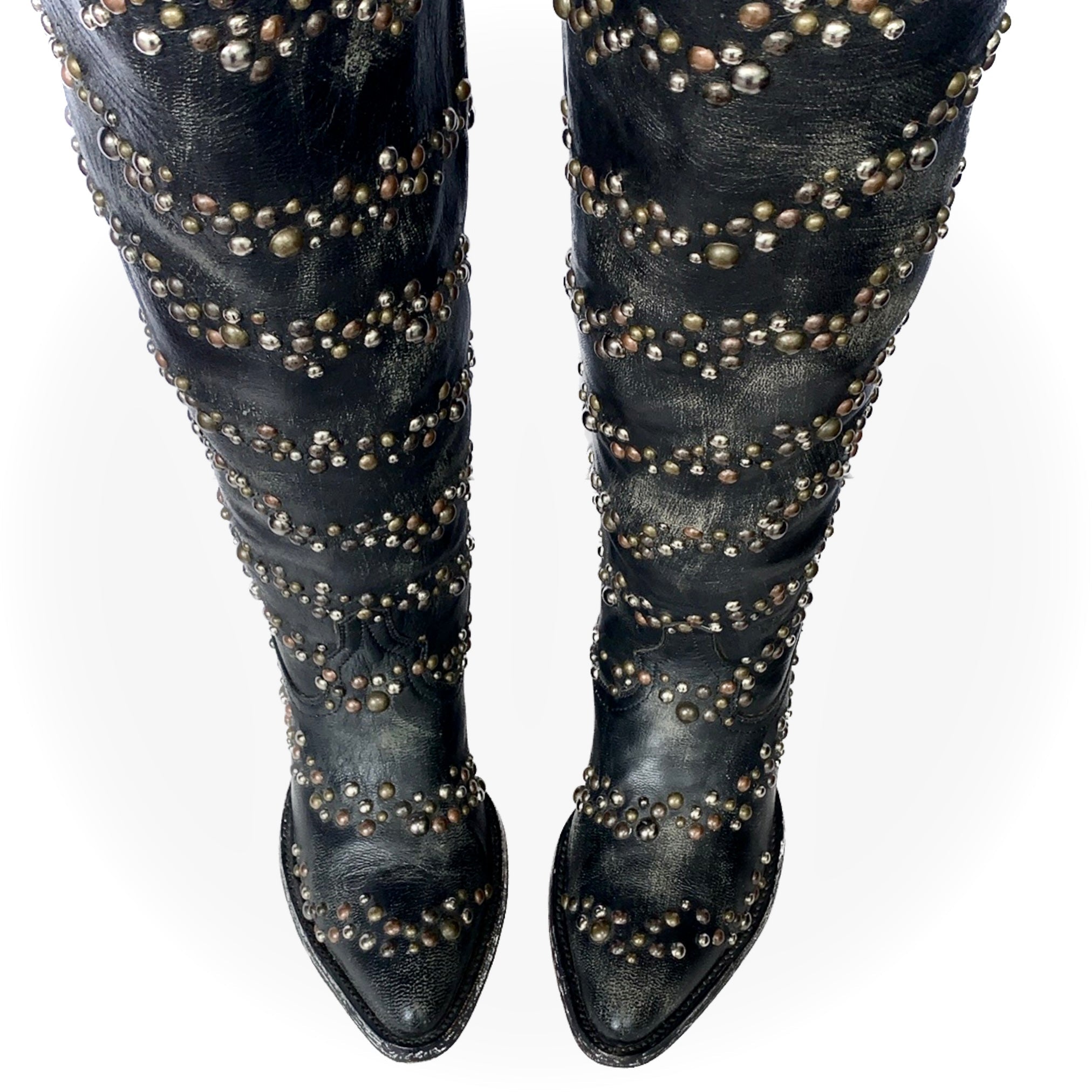 OLD GRINGO Studded Black Leather Tall Knee High Cowgirl Western Boots
