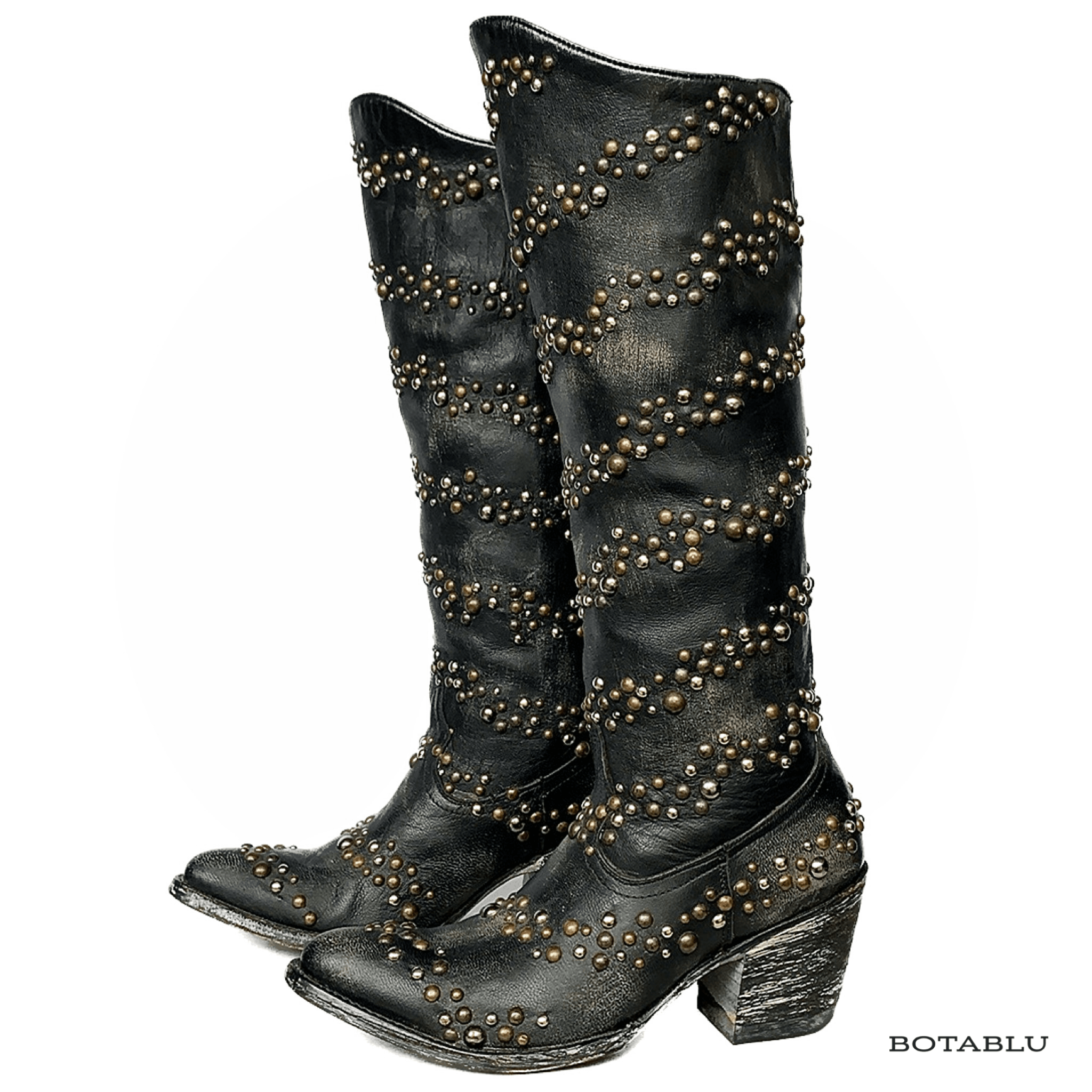 Spectacular, Rare, Near-New, OLD GRINGO Tall Knee High Studded Black High Heel Cowgirl Cowboy Western Boots