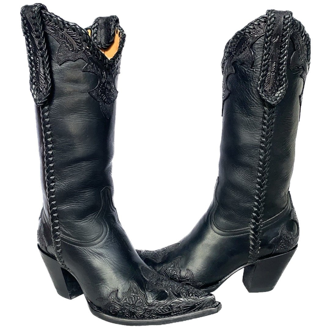 OLD GRINGO Julian Tooled Leather Black Tall Cowgirl Cowboy Western Boots
