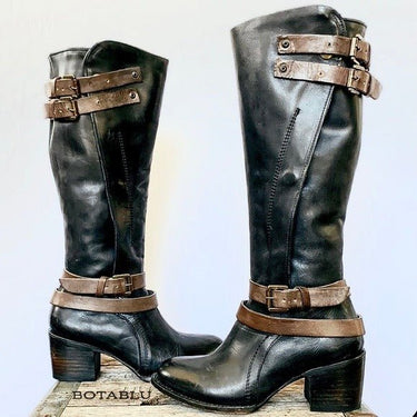FREEBIRD BY STEVEN Clive Black Brown Strappy Buckle Tall Knee High Boho Boots