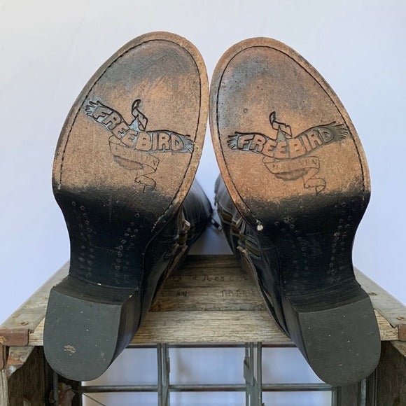 FREEBIRD BY STEVEN Clive Black Brown Leather Strappy Buckle Tall Knee High Boho Boots