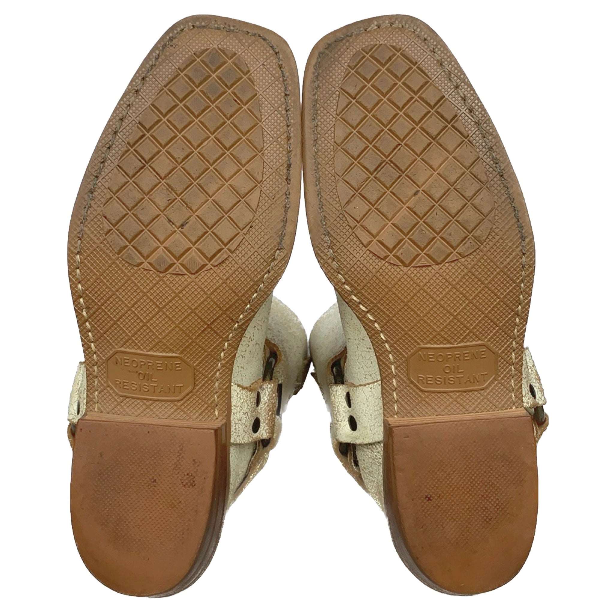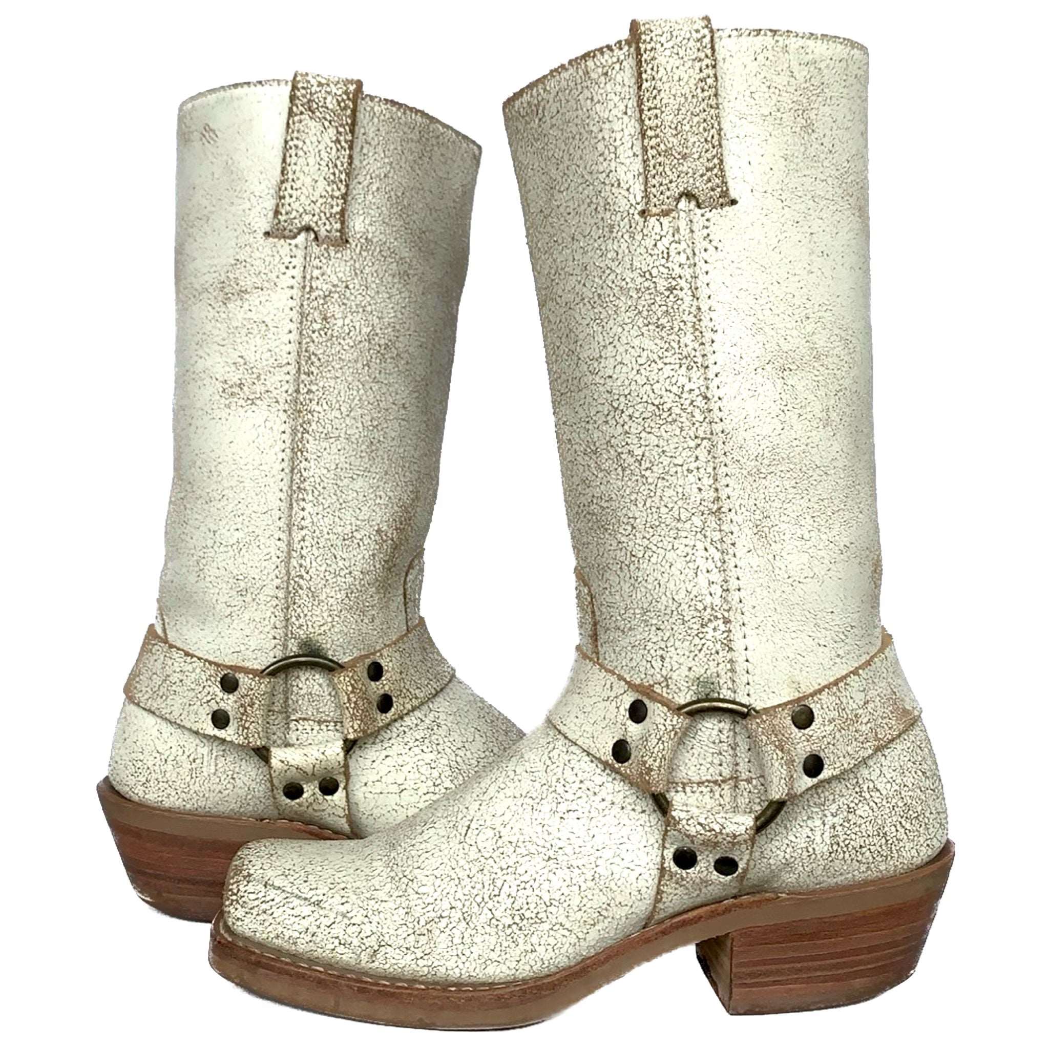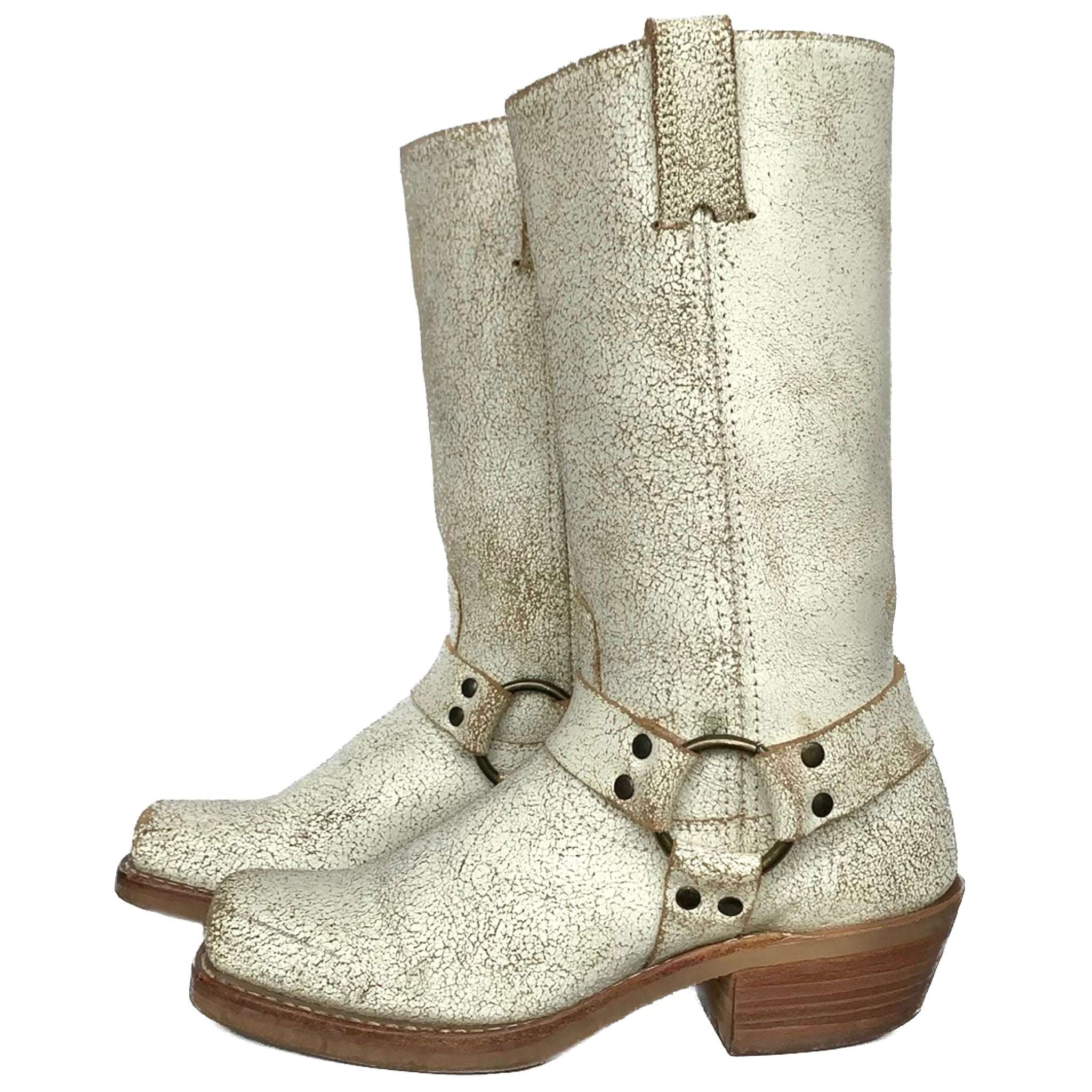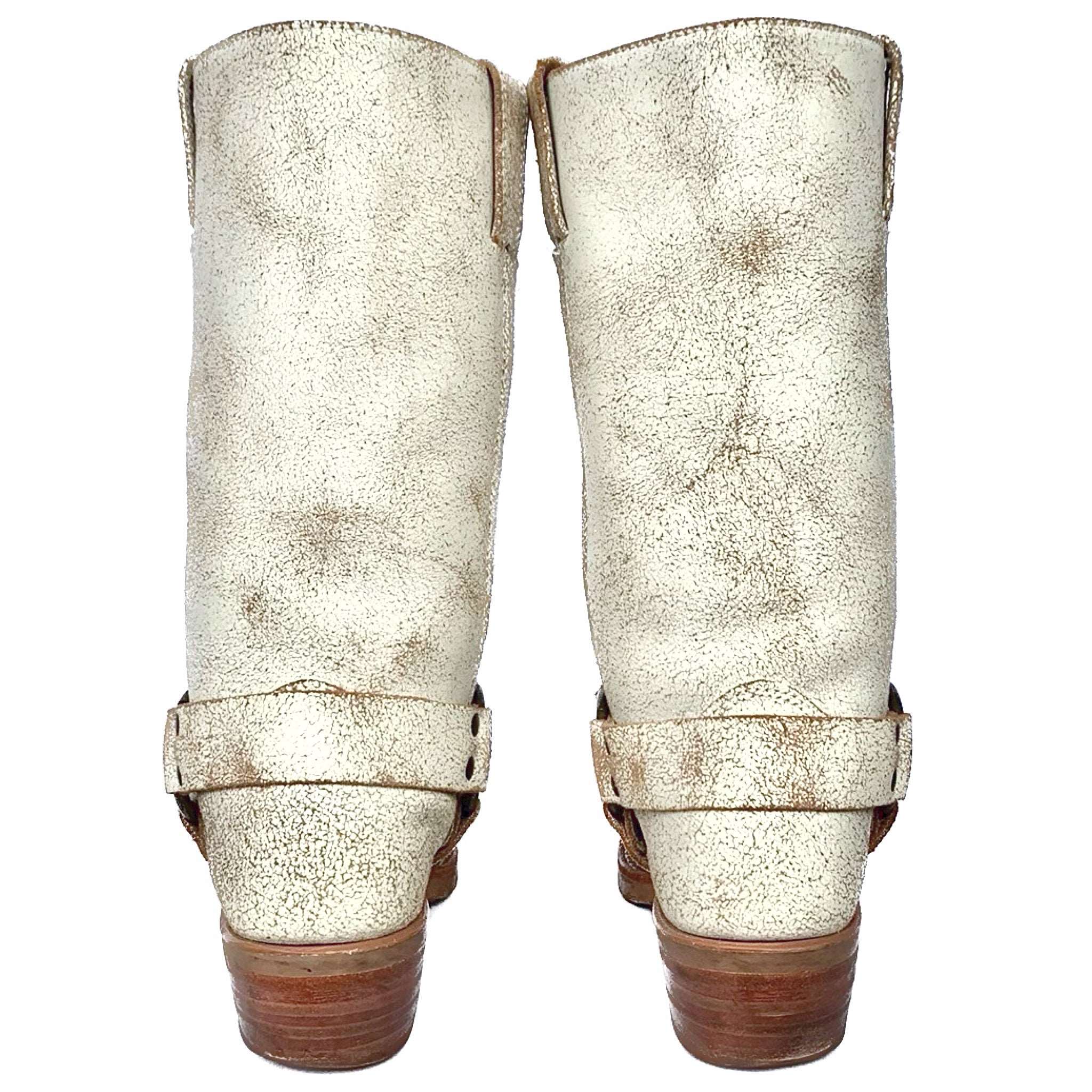 FRYE 12R Harness Crackle White Leather Western Biker Moto Boots