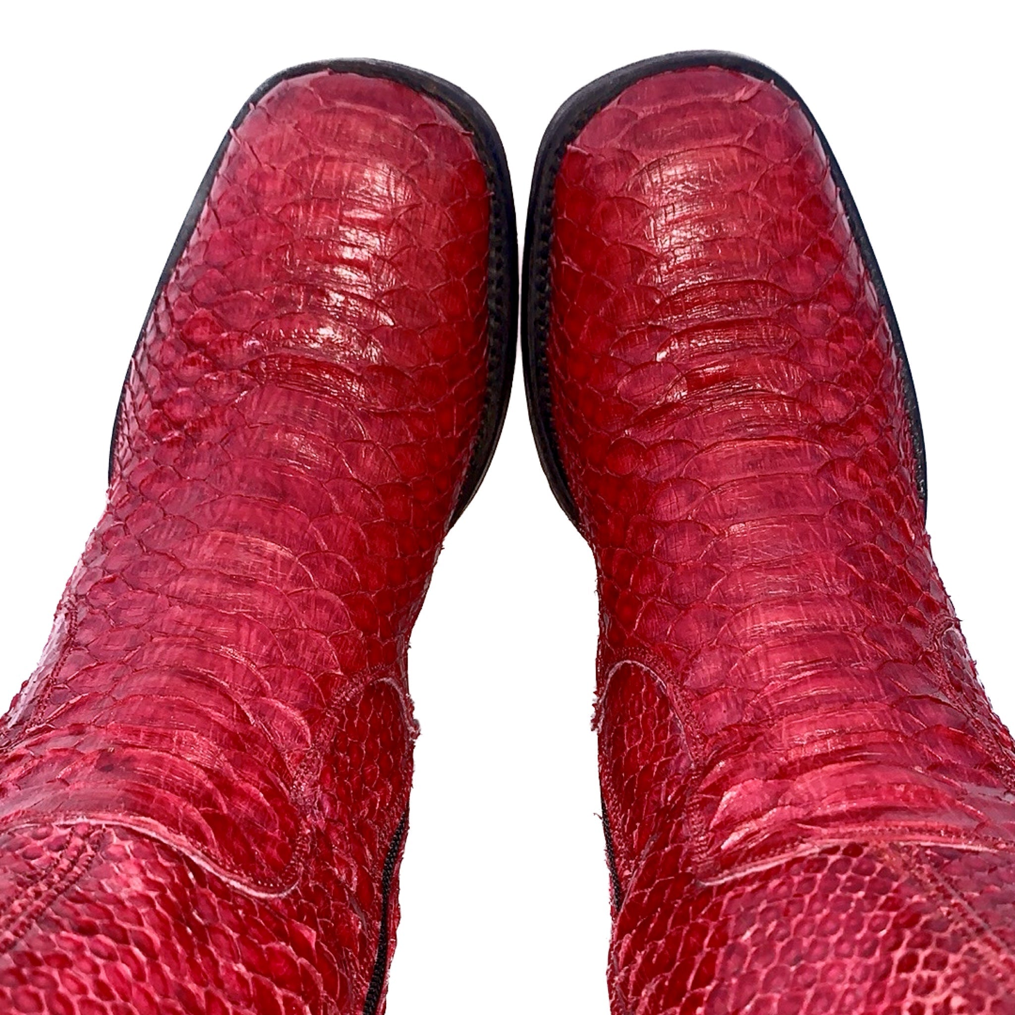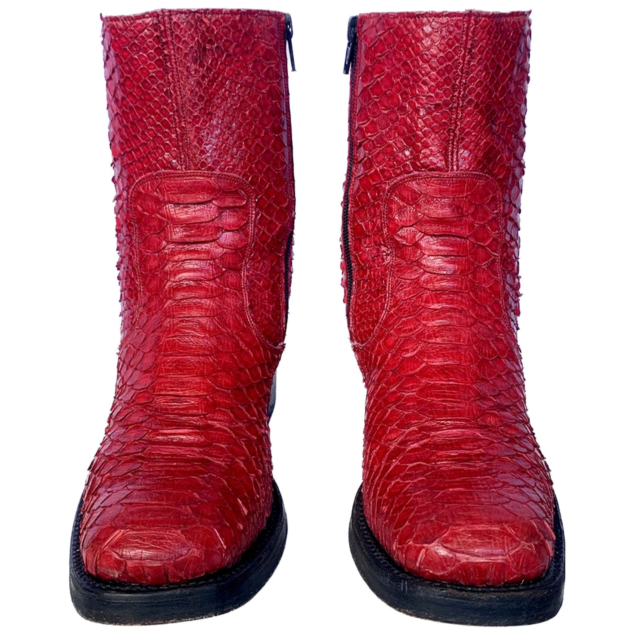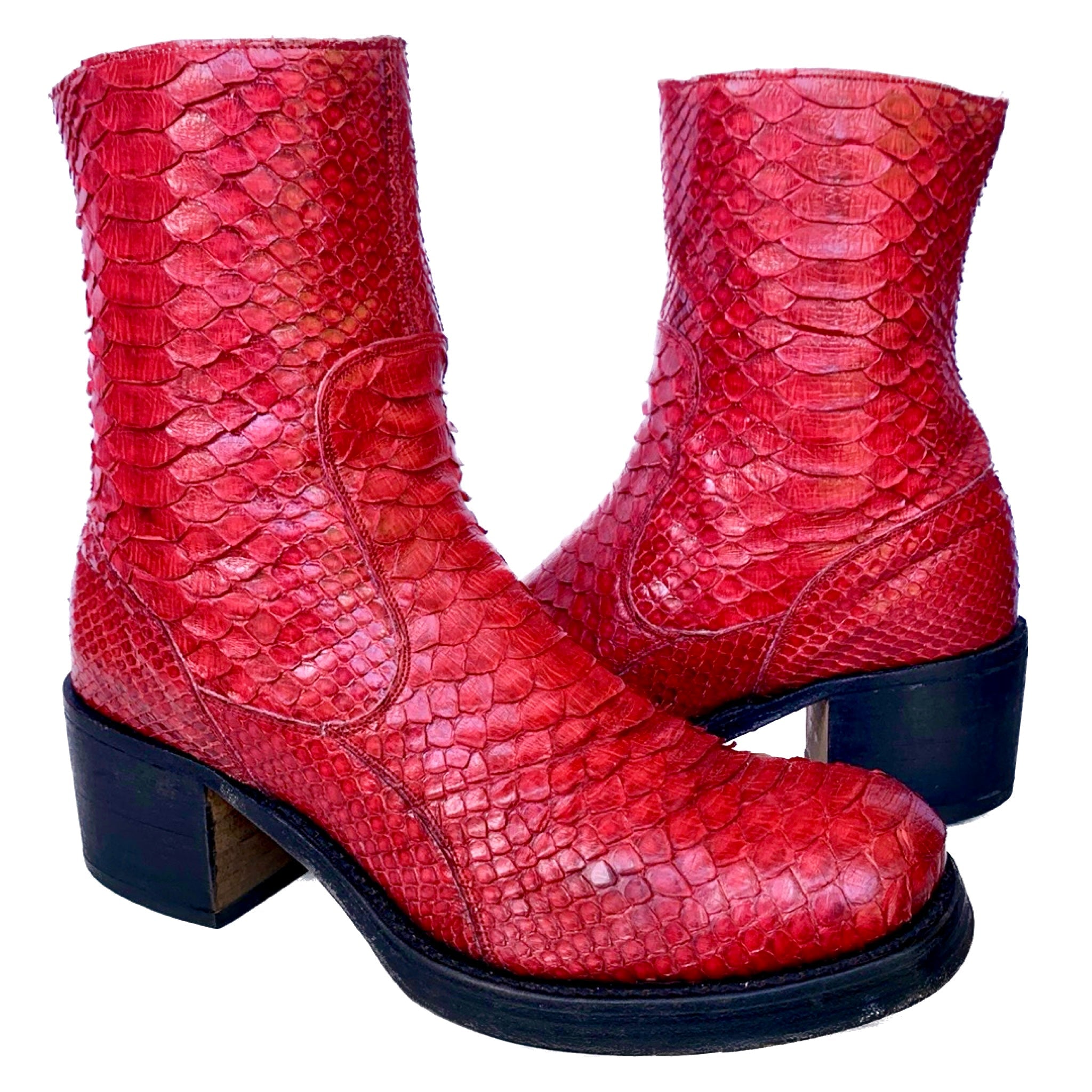TONY MORA Red Python Snakeskin Y2K Campus Style Ankle Boots