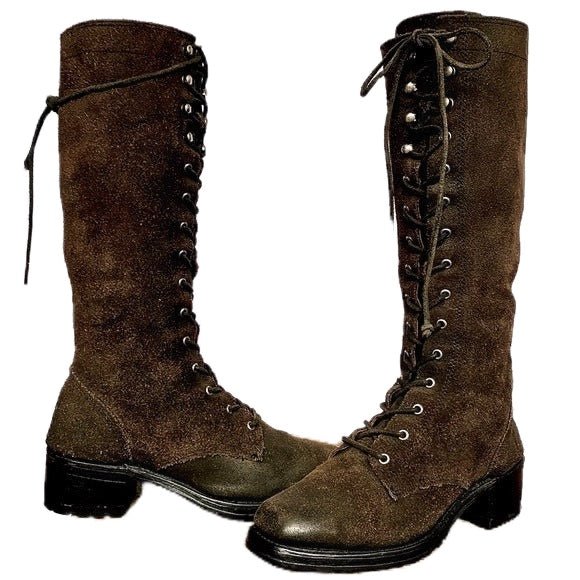 Rare FRYE Campus Lace Up Tall Knee High Zippered Brown Brushed Suede Leather Boots