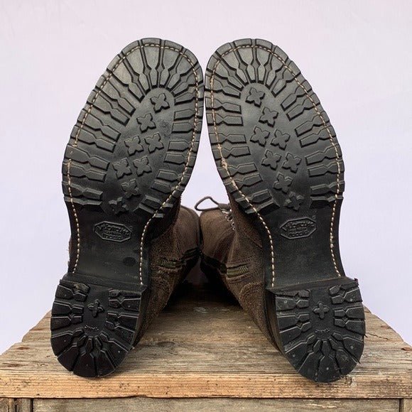 FRYE Vintage Campus Lace Up Tall Knee High Zipper Brown Square Toe Chunky Lug Combat Boots