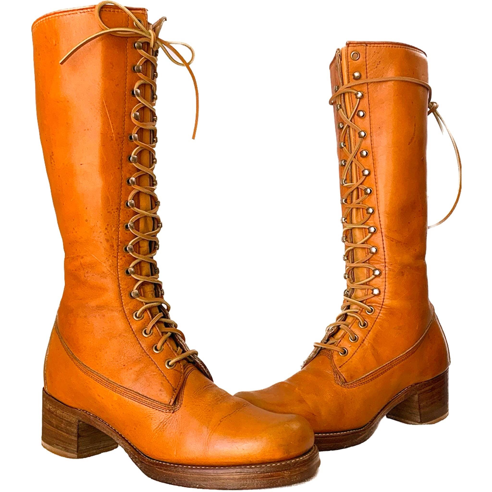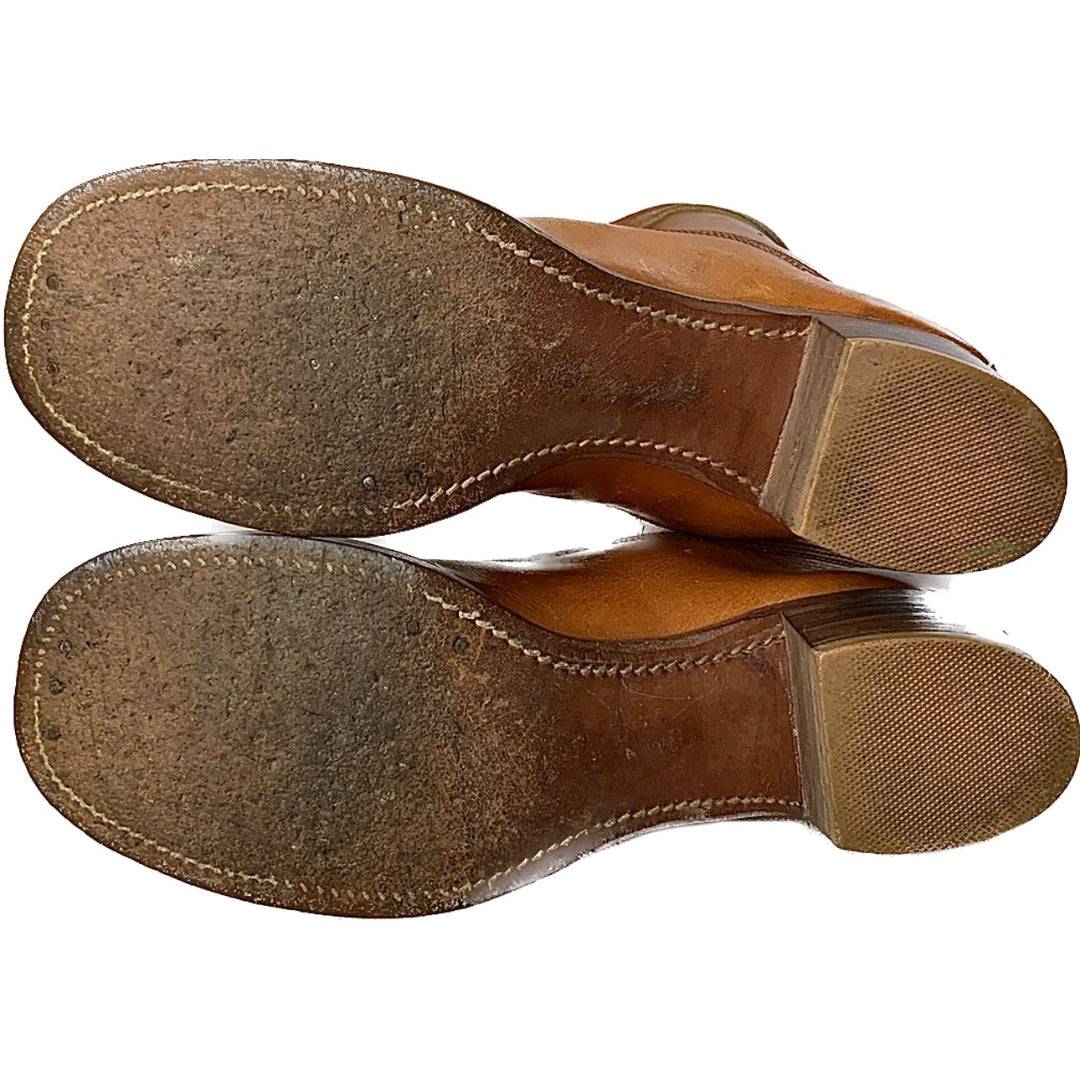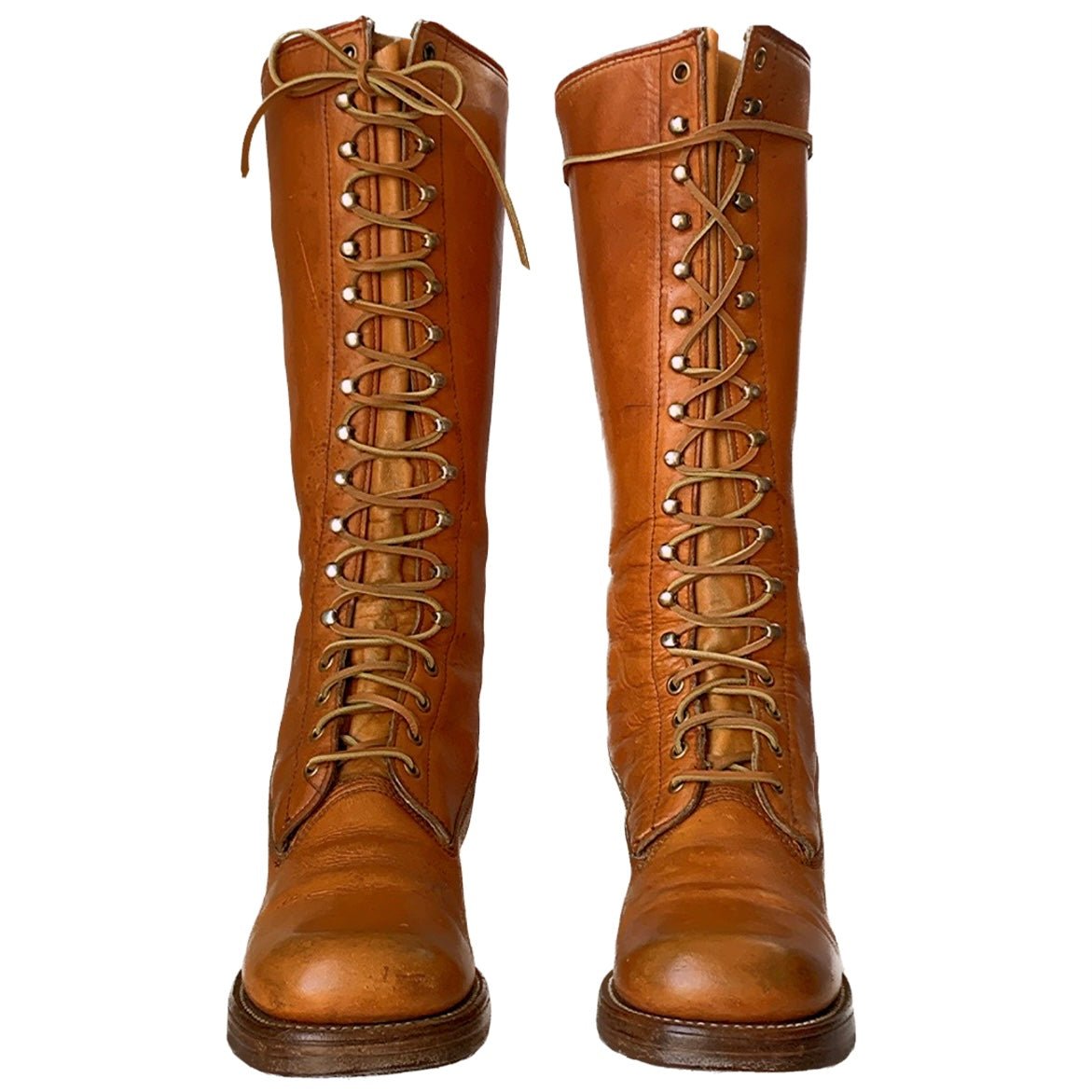 FRYE True Vintage Black Label Lace Up Tall Knee High Sunrise Butterscotch Brown Leather Boots