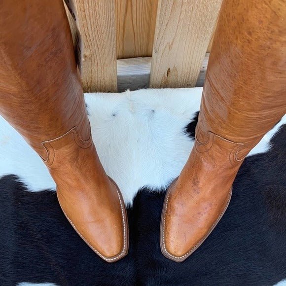 Gorgeous, Rare Frye Vintage—in NEW Condition—Tall Knee High Golden Brown Leather Western Boots