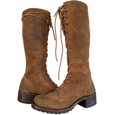 FRYE Campus Lace Up Tall Knee High Zippered Brown Brushed Leather Boots