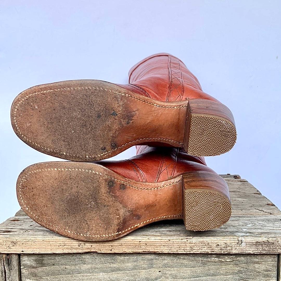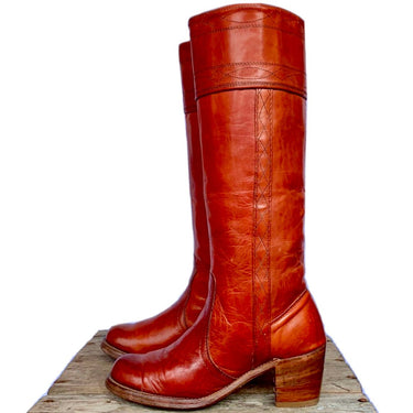 FRYE Vintage Tall Knee High Cuff Stitching Brown Western Riding Boots