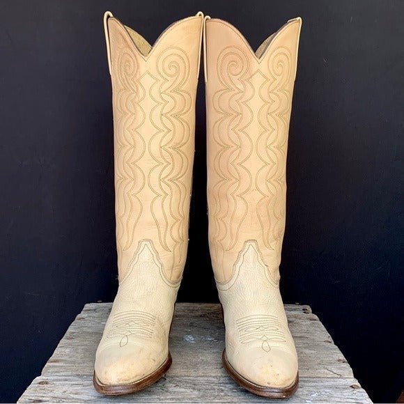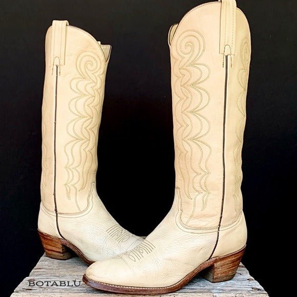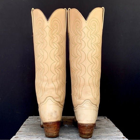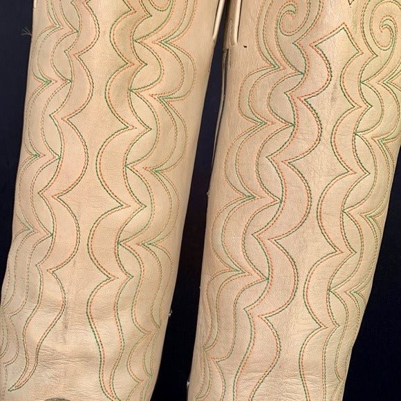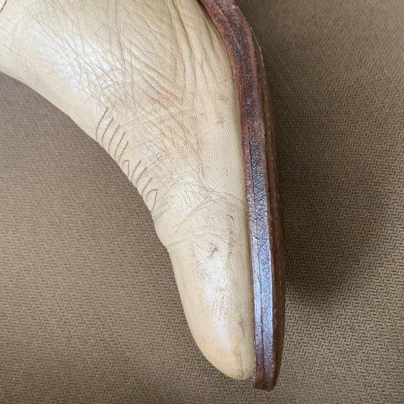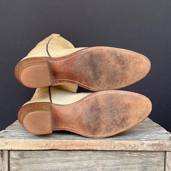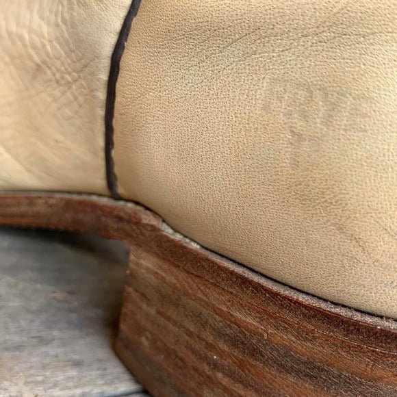 FRYE Vintage Ivory Beige Tall Knee High Stitching Cowgirl Cowboy Western Boots