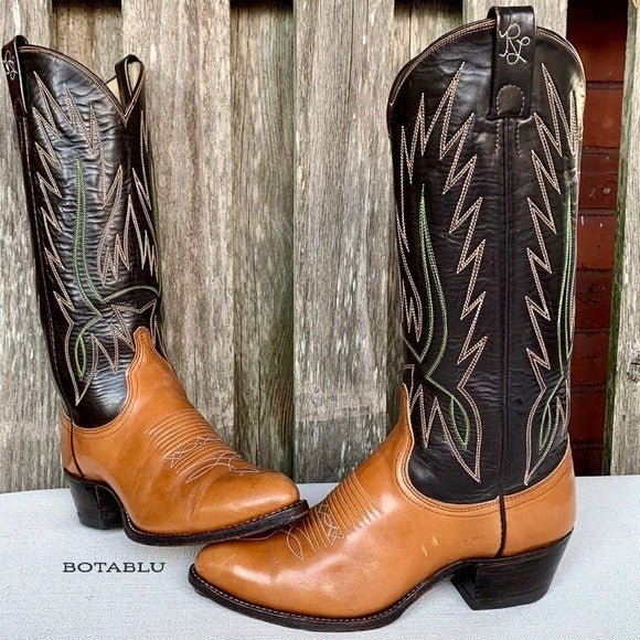 RALPH LAUREN X LUCCHESE Vintage Brown Leather Cowgirl Cowboy Western Boots