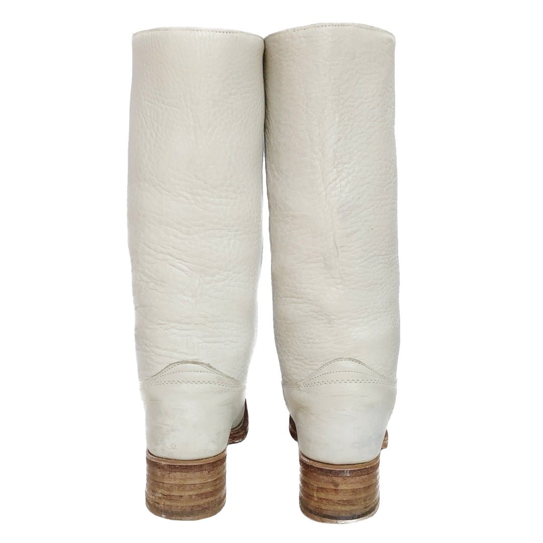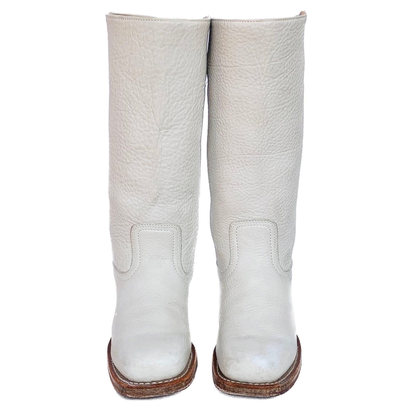Rare Eggshell White FRYE Campus 14L Leather Western Moto Boots