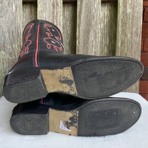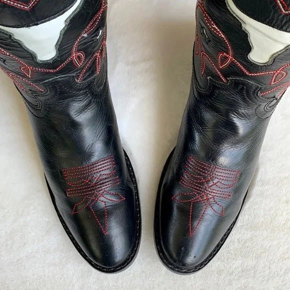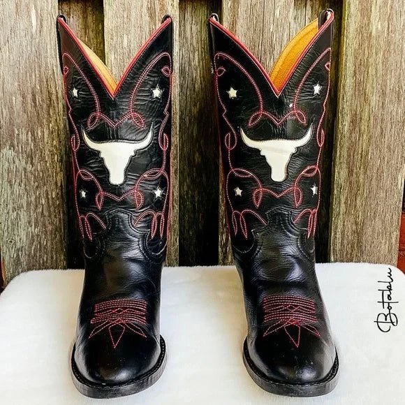 JUSTIN Vintage Steer Head Inlay Short Cowgirl Cowboy Western Boots