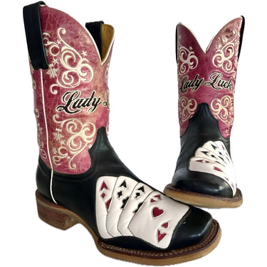 TIN HAUL Lady Luck Poker Aces Square Toe Cowgirl Western Boots