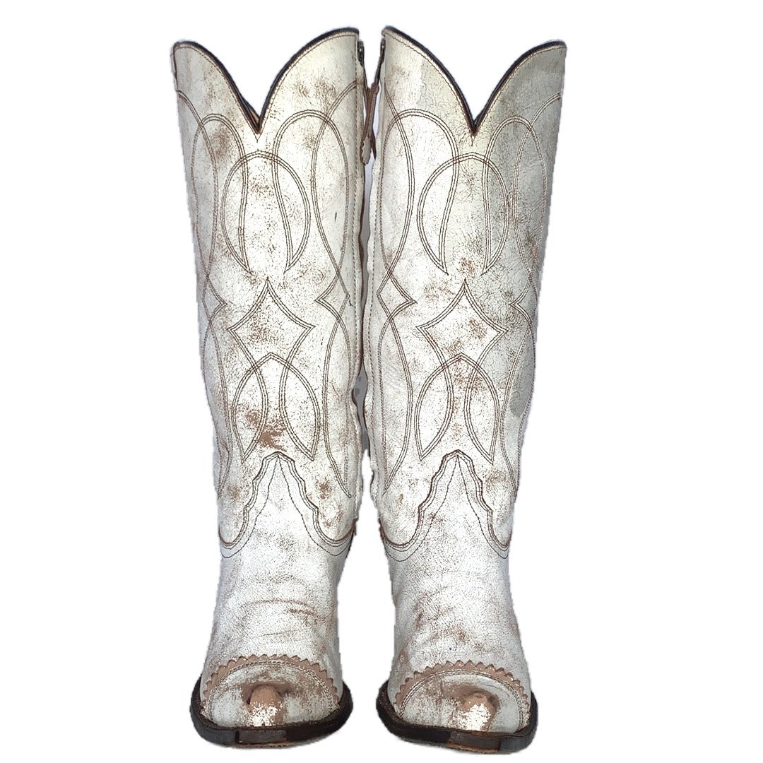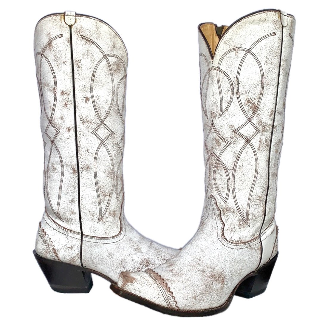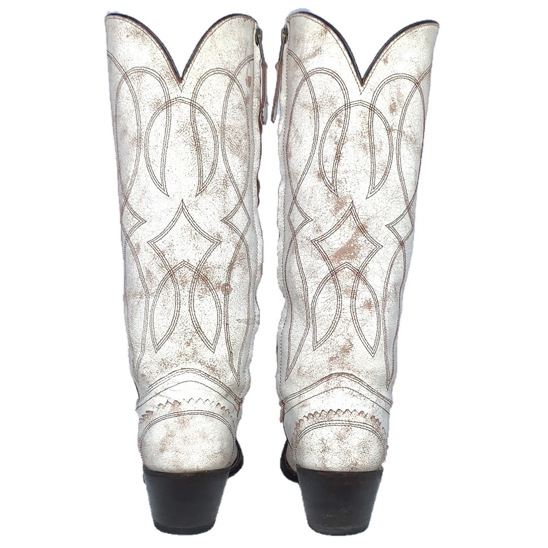 Antique White Geneva Crackle Leather TONY LAMA Tall Knee High Zippered Cowboy Western Boots