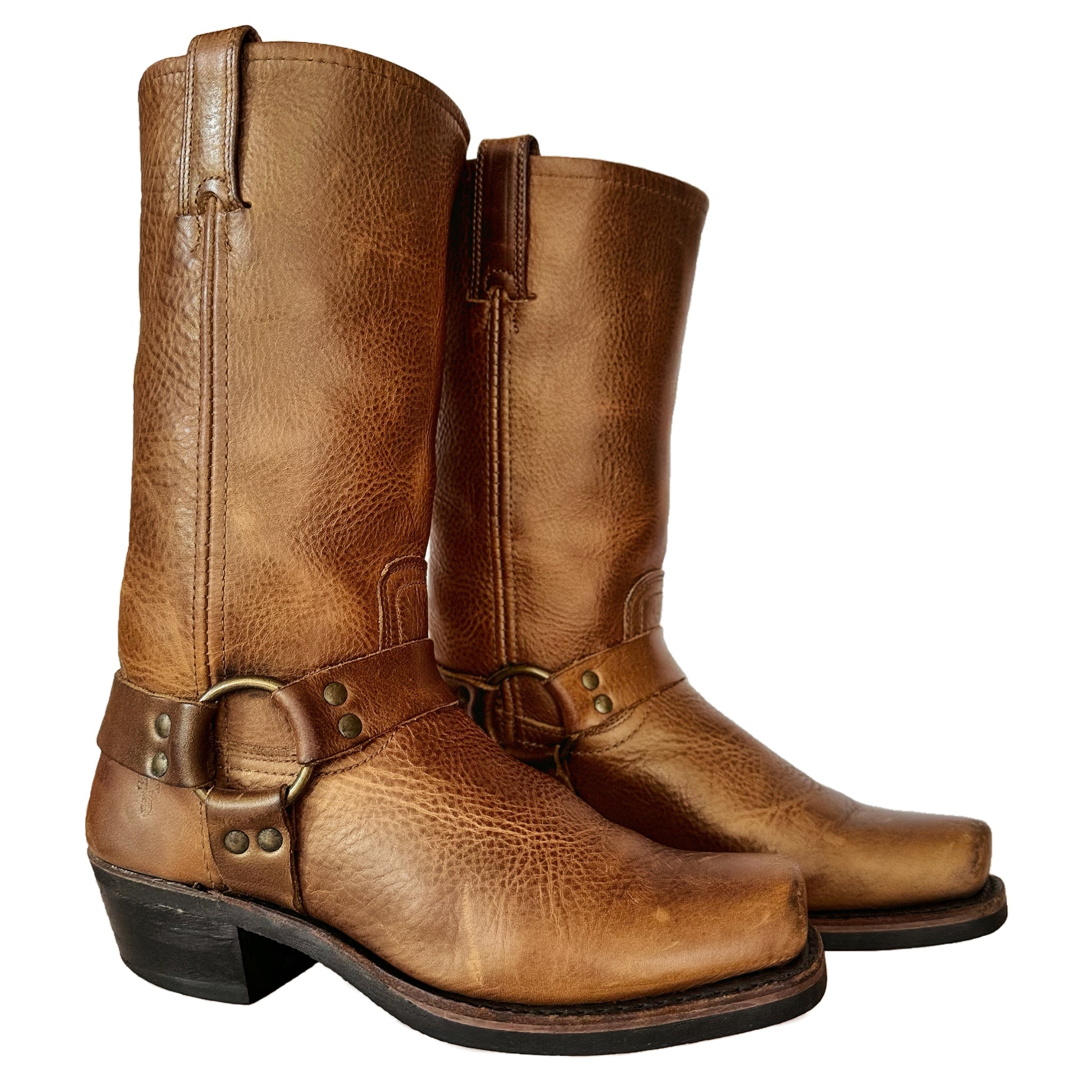 FRYE 12R Harness Gold Tan Brown Leather Western Biker Moto Boots