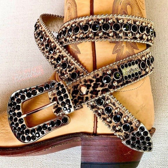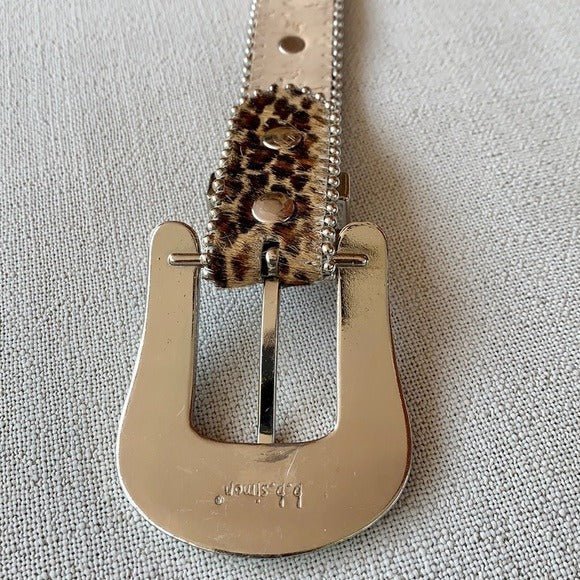 B.B. SIMON Hair On Cowhide Leopard Crystal Leather Cowgirl Western Belt