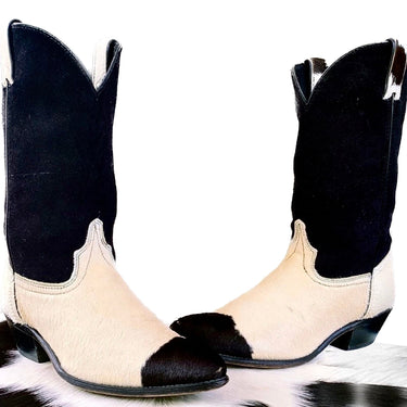 CODE WEST DAN POST Vintage Pony Cowhide Calf Hair On Cowgirl Western Boots