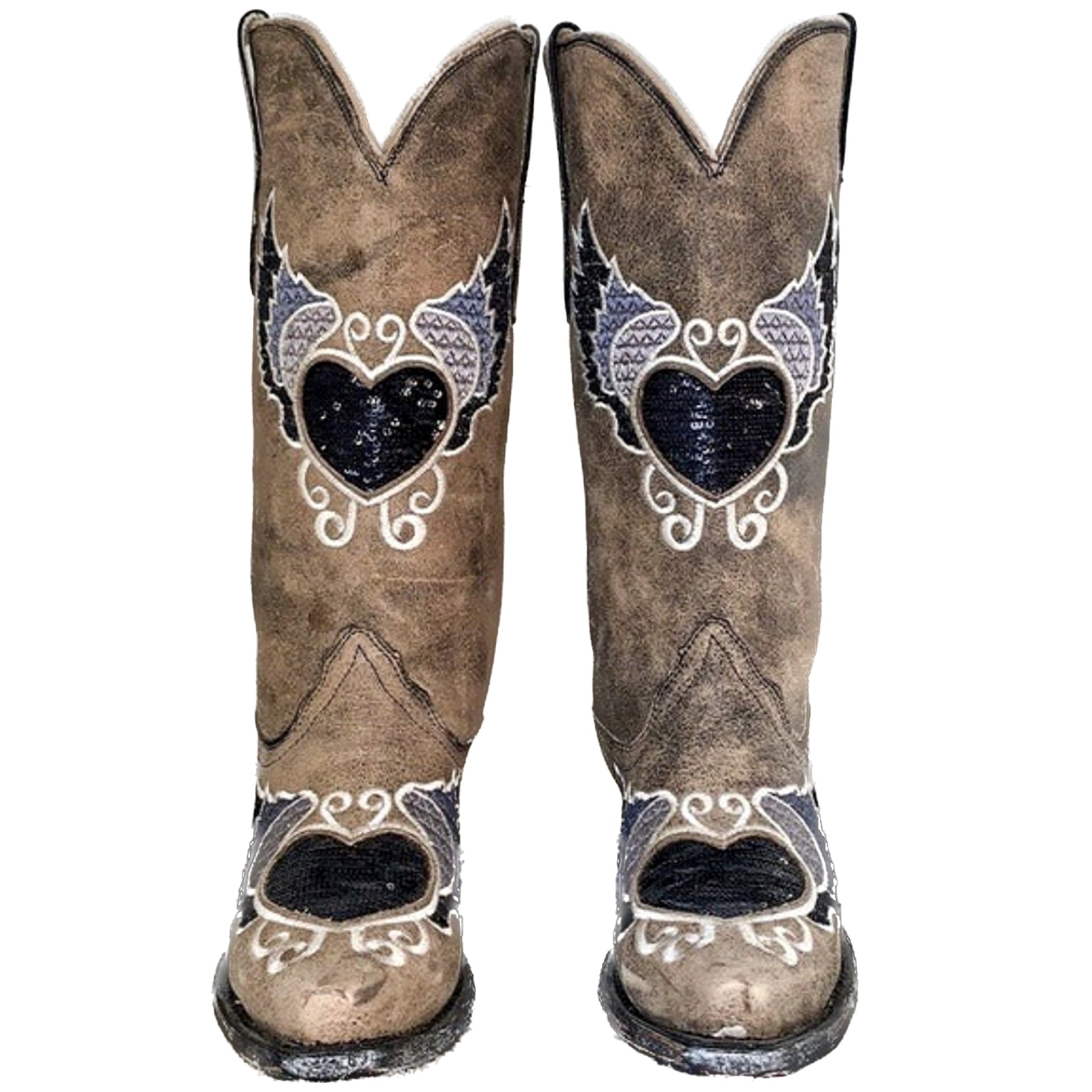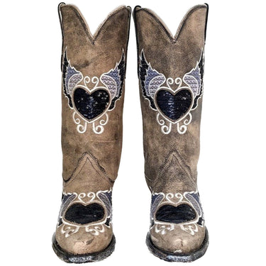 CORRAL Sequin Heart Wings Tall Mid-Calf Snip Toe Cowgirl Cowboy Boots