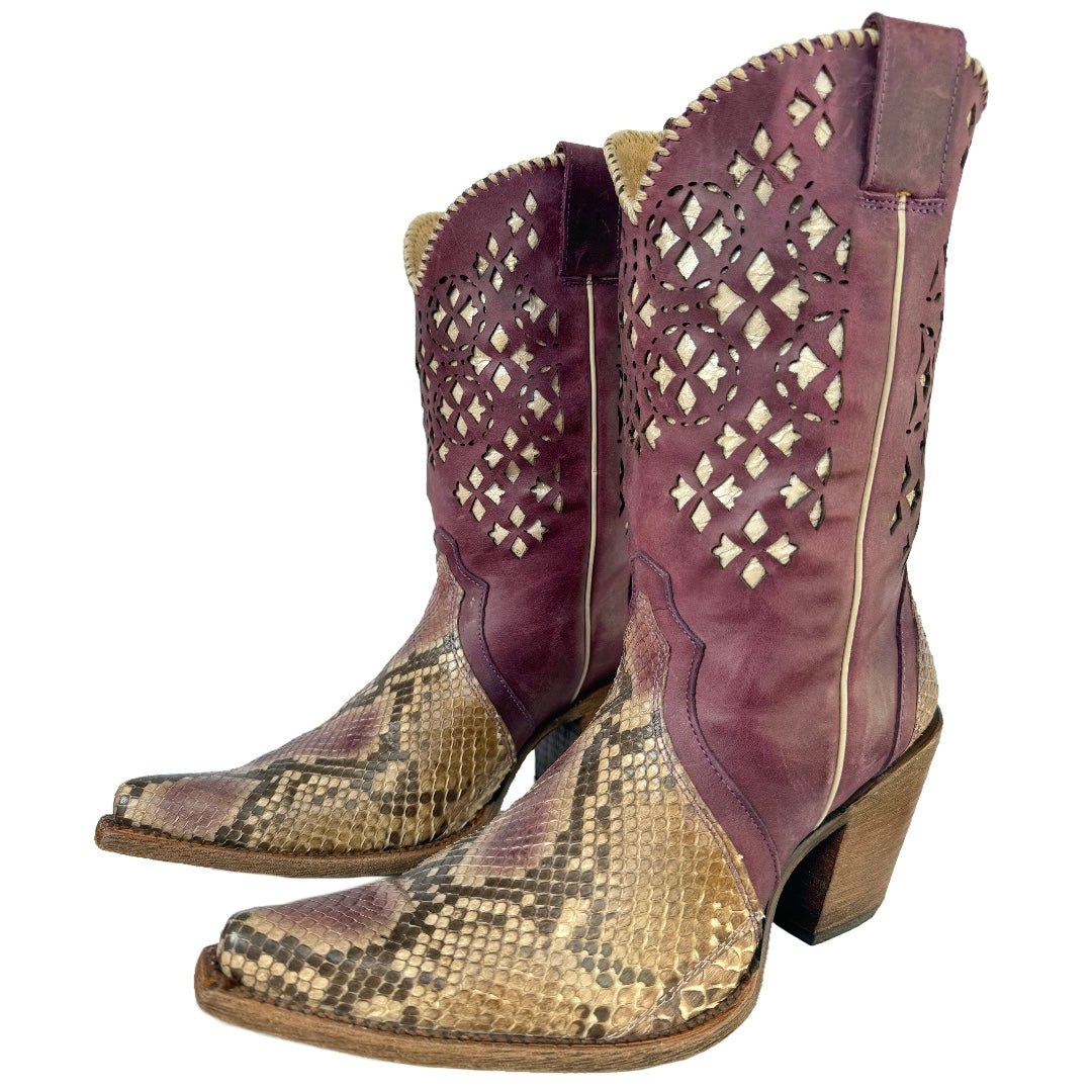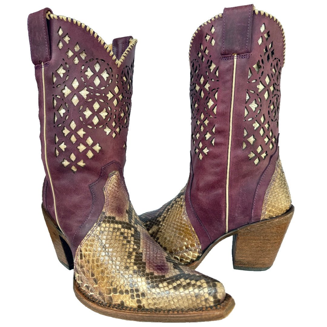 CORRAL C1962 Genuine Python Exotic Skin Brown Purple Cutout Leather Cowgirl Cowboy Western Boots