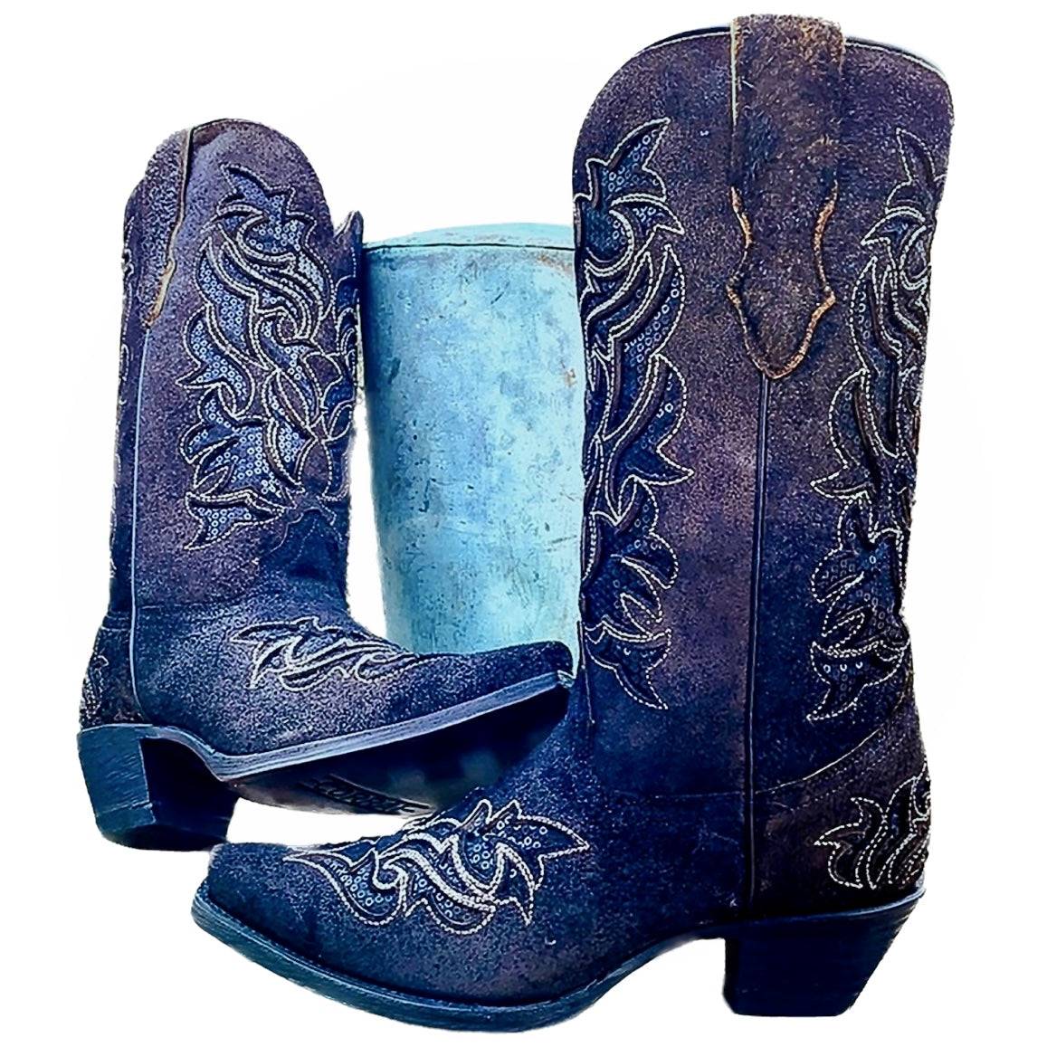 Stunning. Brand NEW. CORRAL Handcrafted Sequin Inlay Roughout Black Leather Metallic Silver Stitching Embroidery Mid Calf Snip Toe Cowboy Cowgirl Western Boots