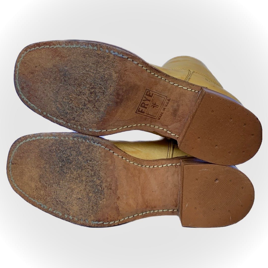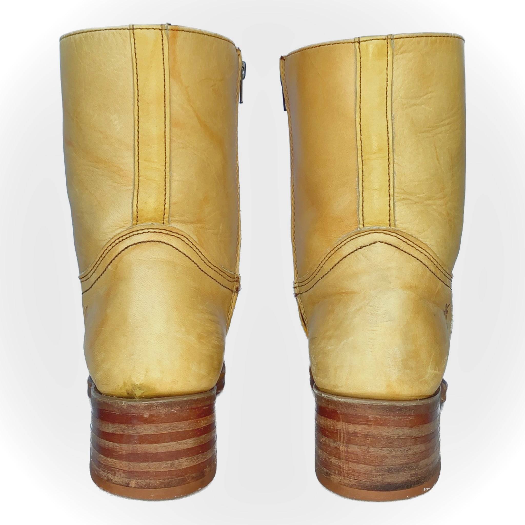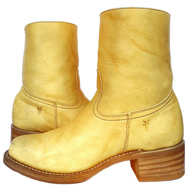 Frye’s rare, and discontinued, vintage-age campus bootie, in the highly sought after banana yellow leather